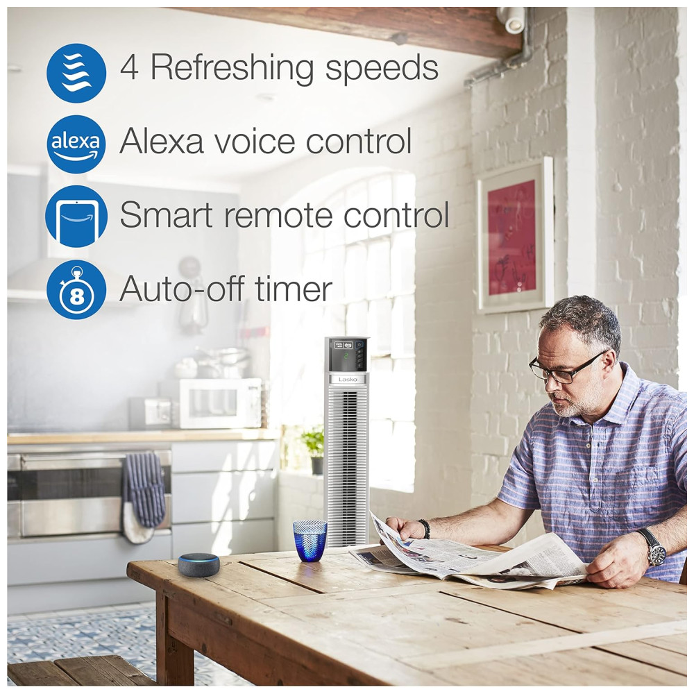 Descubra o Ventilador de Torre Oscilante Lasko Compatível com Alexa!