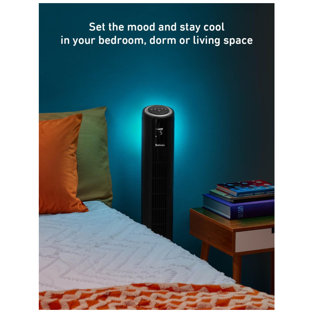 Ventilador de Torre Oscilante com 5 Velocidades 4 Modos Controle Remoto e Temporizador de 8H 110V 69W Holmes Preto