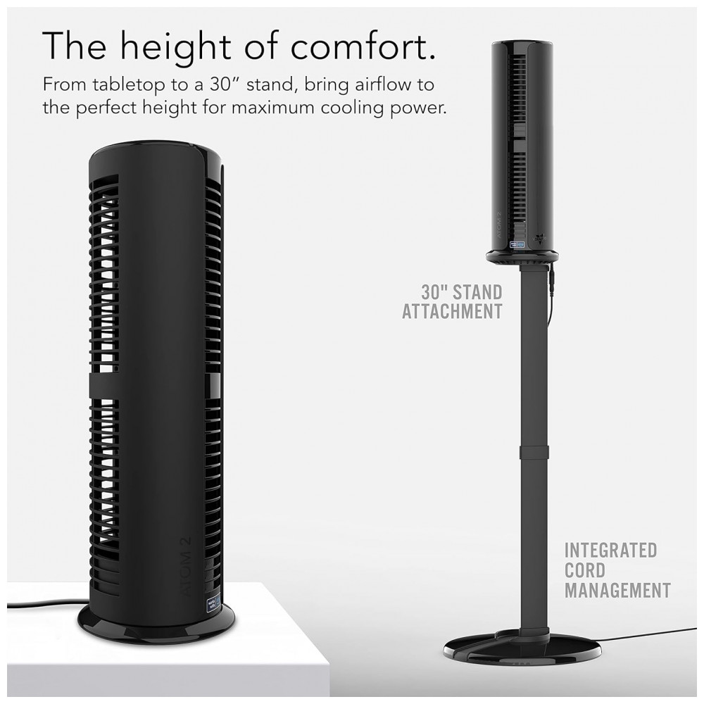 Design Exclusivo: O ATOM 2S permite que você converta de uma mesa para um suporte com a base de 76 cm incluída, elevando o fluxo de ar. Este circulador de torre pequeno, mas poderoso, proporciona o conforto de resfriamento da qualidade que você espera de um produto Vornado.