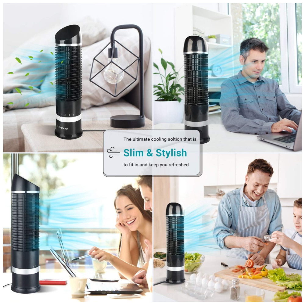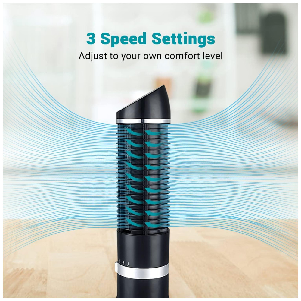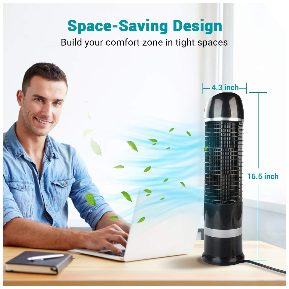 Design Compacto que Economiza Espaço: Com 40,6 cm de altura e uma base compacta de 10,9 cm, este ventilador se encaixa perfeitamente em mesas, mesas de cabeceira, balcões de cozinha e mesas de escritório, tornando-se um ótimo complemento para qualquer espaço reduzido.
