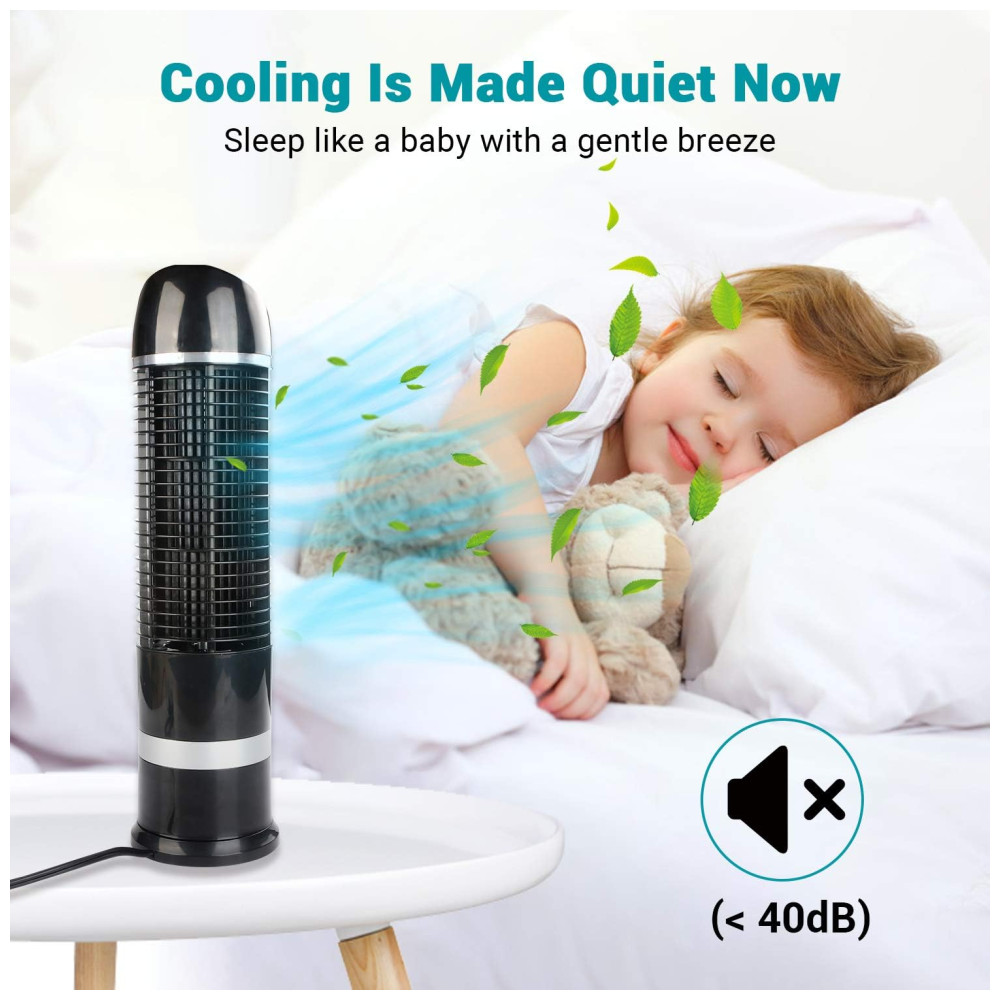 Refrigeração Silenciosa: Apesar de seu design pequeno e elegante, este ventilador de mesa opera em baixa intensidade de ruído (menos de 40 dB), puxando o ar ao redor e forçando-o através da grade frontal, proporcionando uma corrente de ar fresca e tranquila, ideal para um sono restaurador.