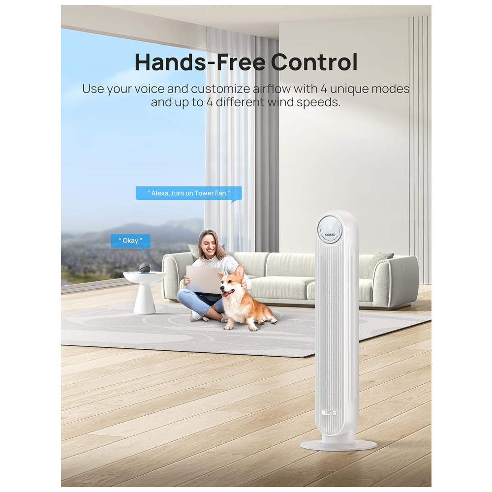 Ventilador de Torre Oscilante e Silencioso com Controle Remoto 4 Velocidades 4 Modos e Controle de Voz 110V 42W Dreo Branco