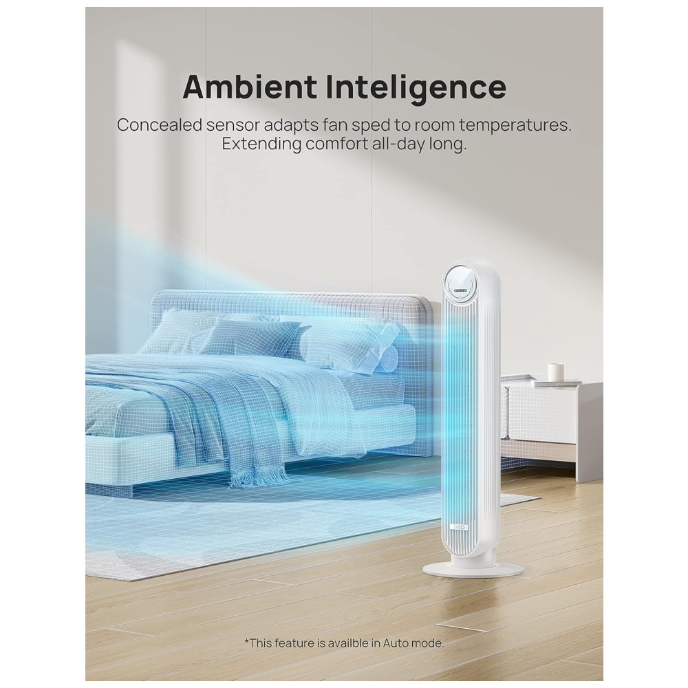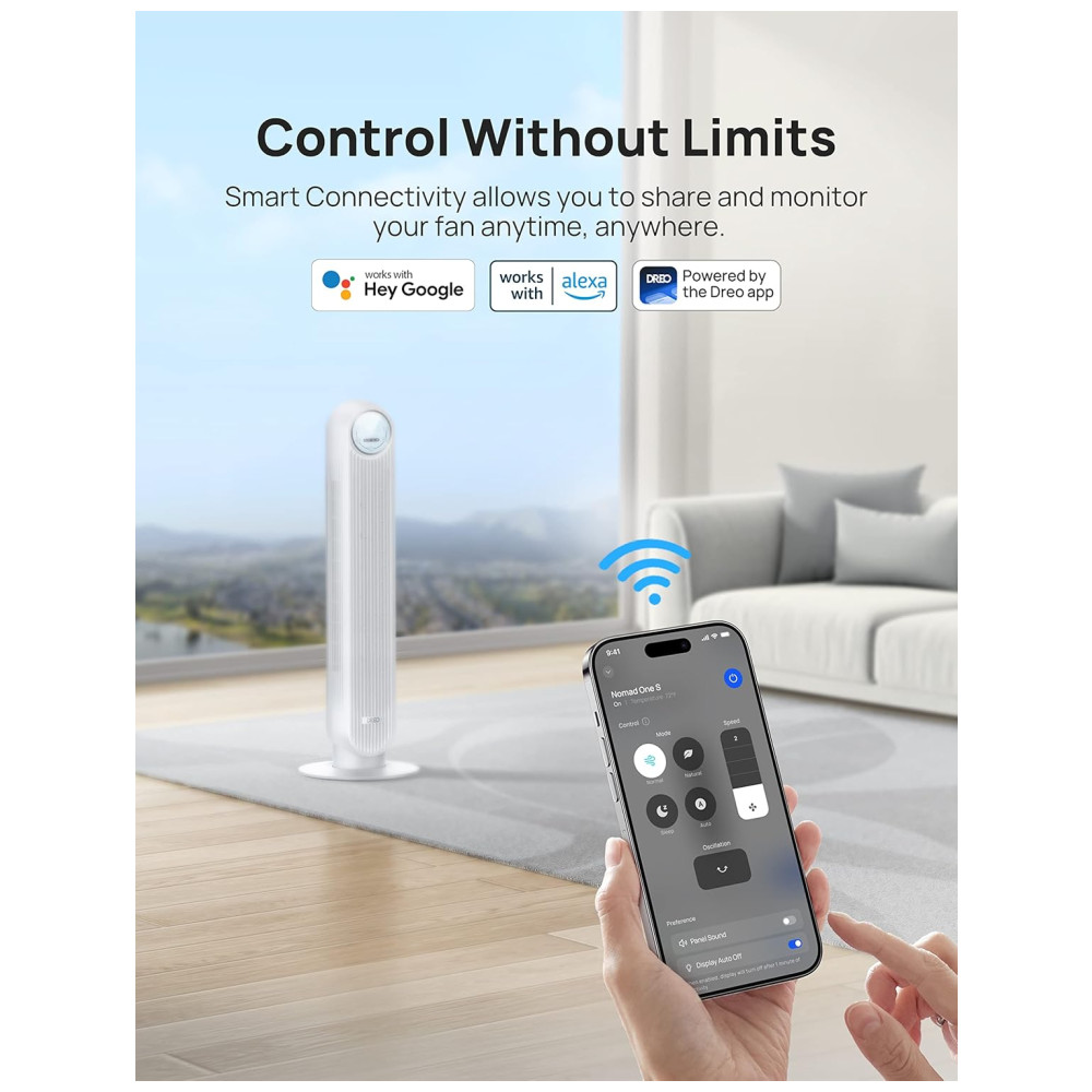 Integração Inteligente Sem Costura: Use seu ventilador torre facilmente com comandos de voz ou acesse mais funções, como temperatura do ar, configurações de velocidade e modos, através do aplicativo Dreo. No Modo Automático, este ventilador de piso detecta a temperatura ambiente e ajusta automaticamente as velocidades.