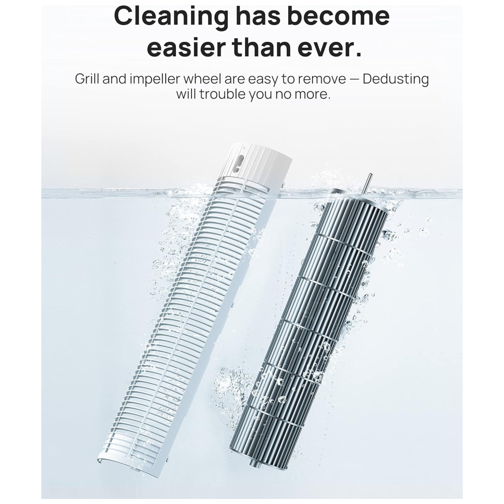 Fácil de Limpar e Seguro de Usar: O painel traseiro removível e a roda do impulsor facilitam a limpeza. Com grelhas à prova de dedos, plugue fusível e proteção de circuito embutida, este ventilador sem hélice listado pela ETL garante que a segurança esteja sempre em primeiro lugar.