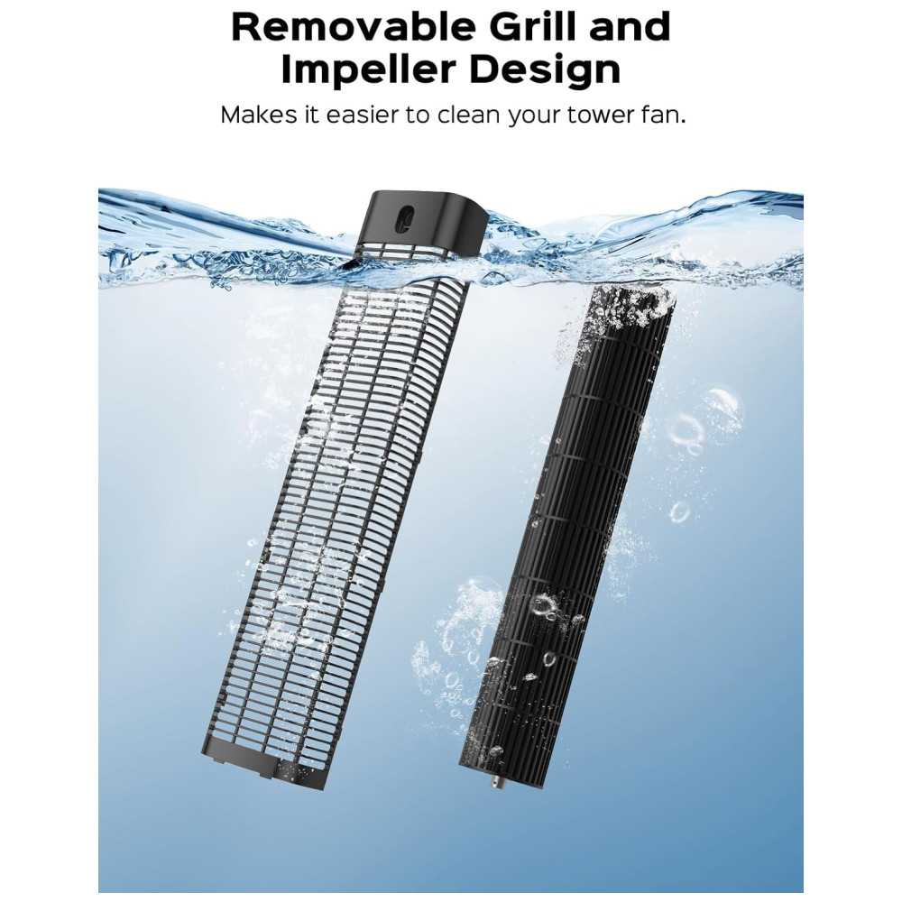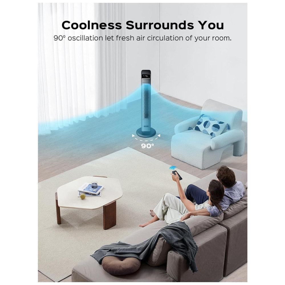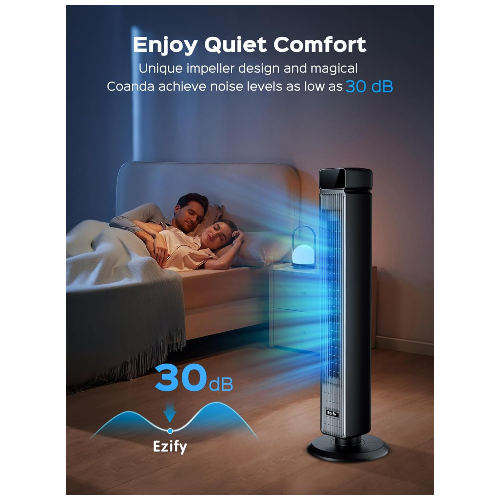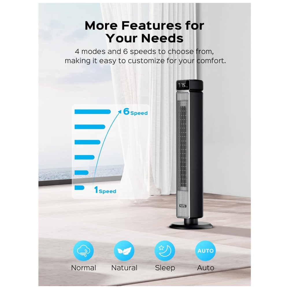 Ventilador de Torre para Quarto Ventilador de Piso Silencioso 30dB Oscilação 90° 6 Velocidades 4 Modos Timer 12H Controle RemotoEzifyPreto