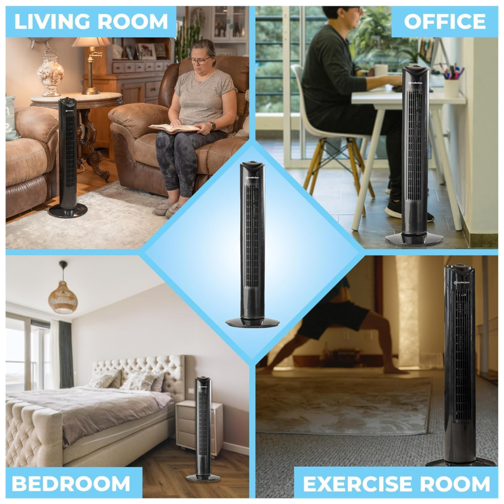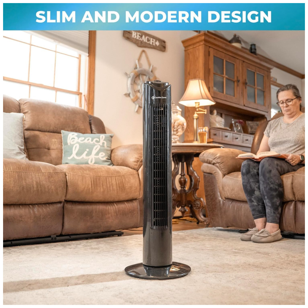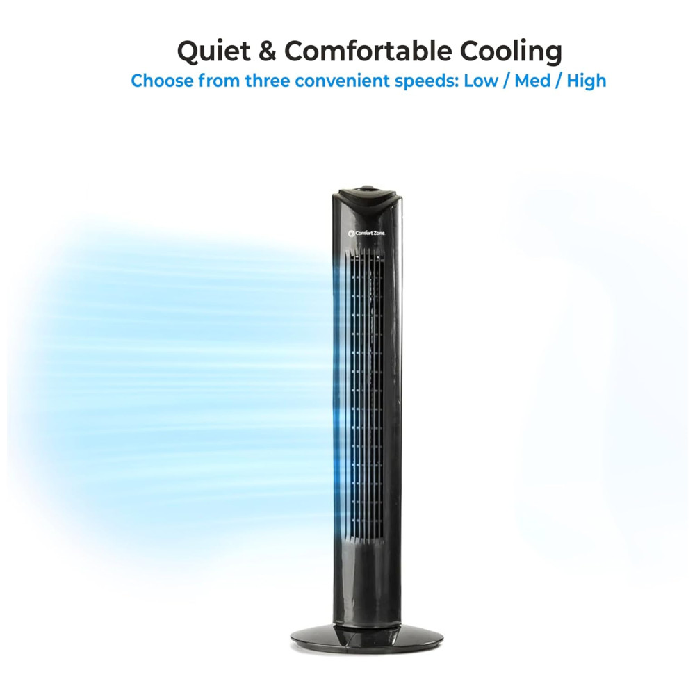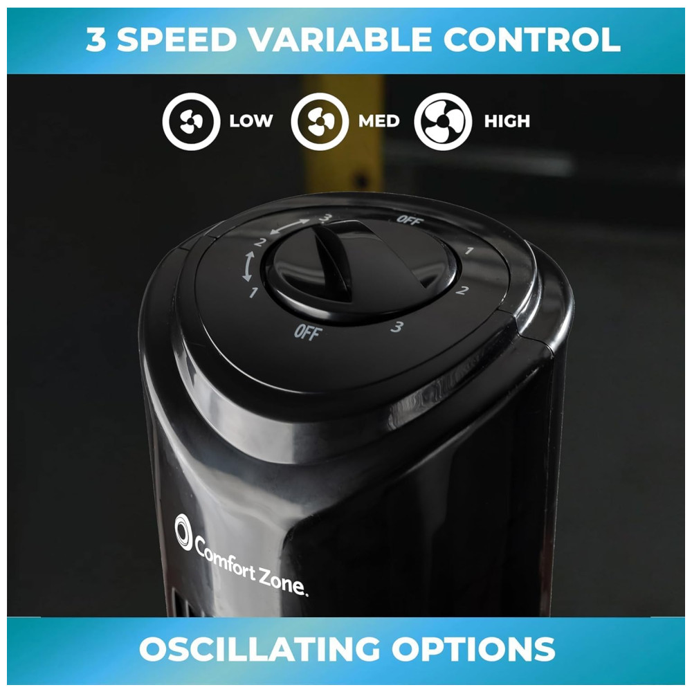 Ventilador de Torre Portátil Oscilante 3 Velocidades Oscilação 90 Graus Alça de Transporte Integrada CZ12386 Comfort Zone