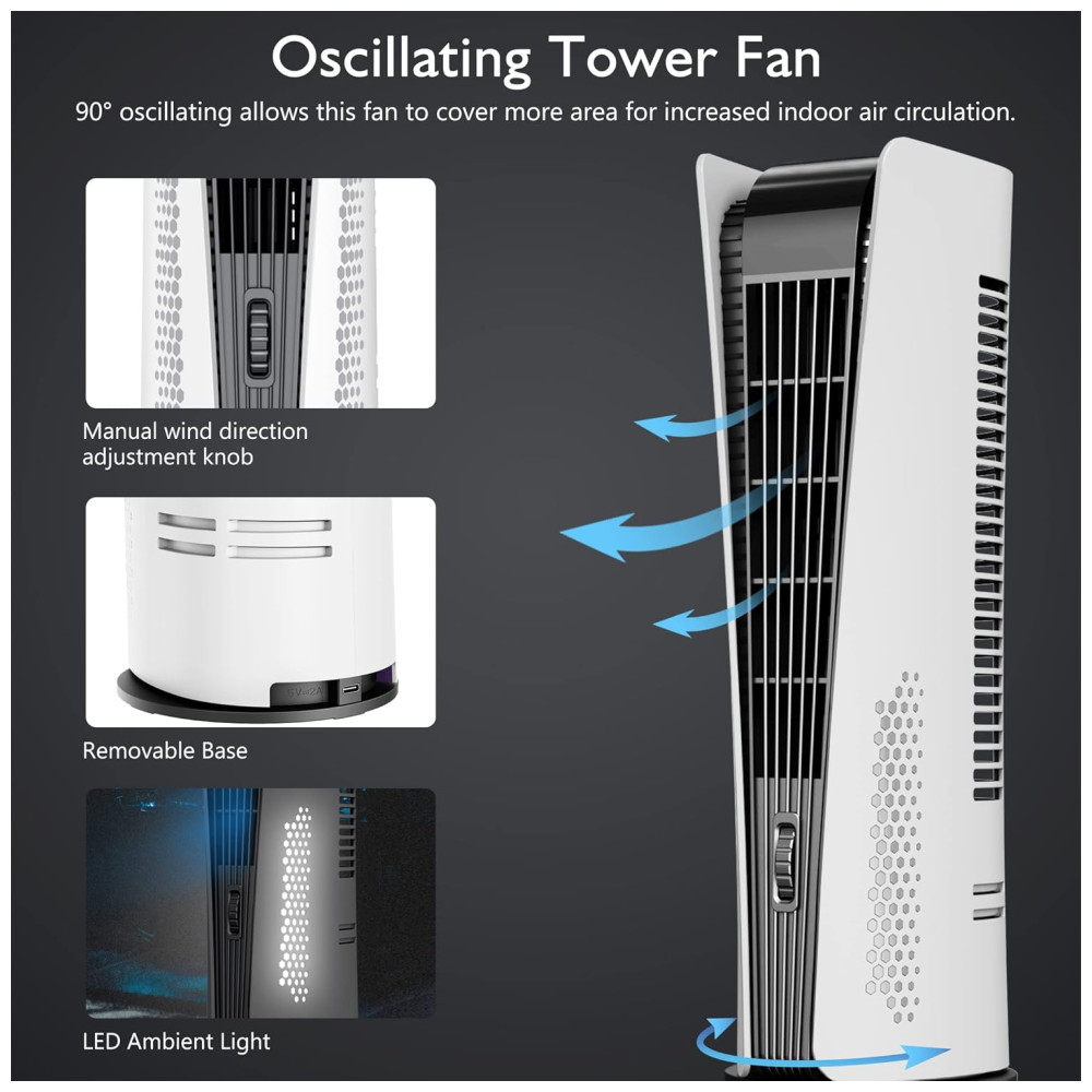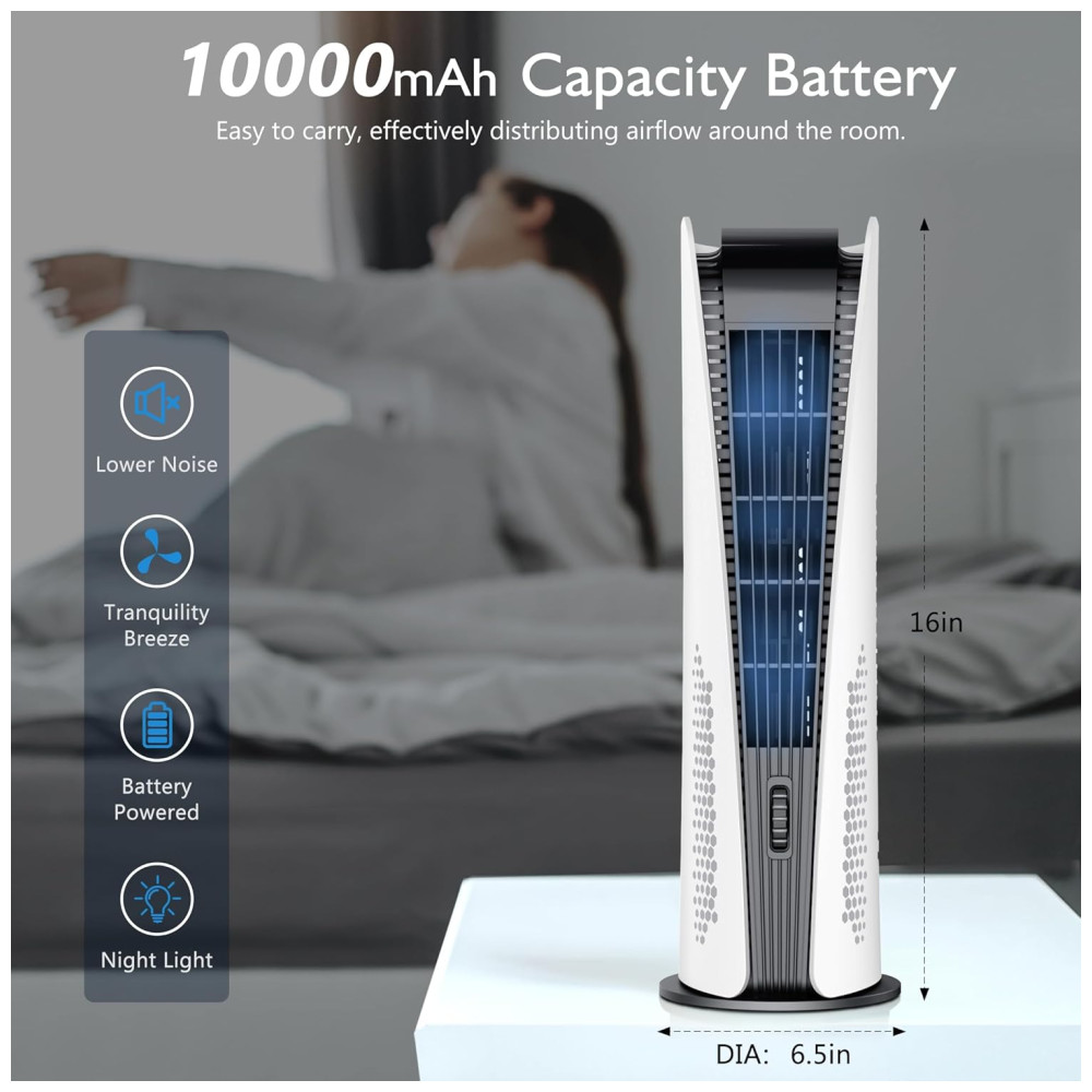Ventilador de Pé: Como os ventiladores torre com bateria não requerem conexão de energia constante, eles contribuem para um ambiente mais limpo e menos desordenado. Sem fios para tropeçar ou esconder, o ventilador proporciona uma aparência mais organizada e facilita a manutenção.