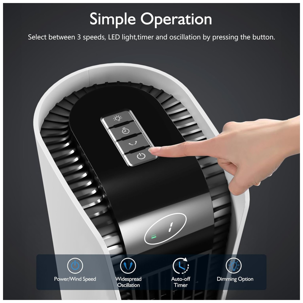 Ventilador Silencioso para o Quarto: Com 3 configurações de velocidade ajustáveis, este ventilador opera em baixo nível de ruído, movendo uma quantidade significativa de ar. O recurso de timer permite programar o desligamento em 1, 2 ou 4 horas, ajudando você a desfrutar de uma noite de sono tranquila.