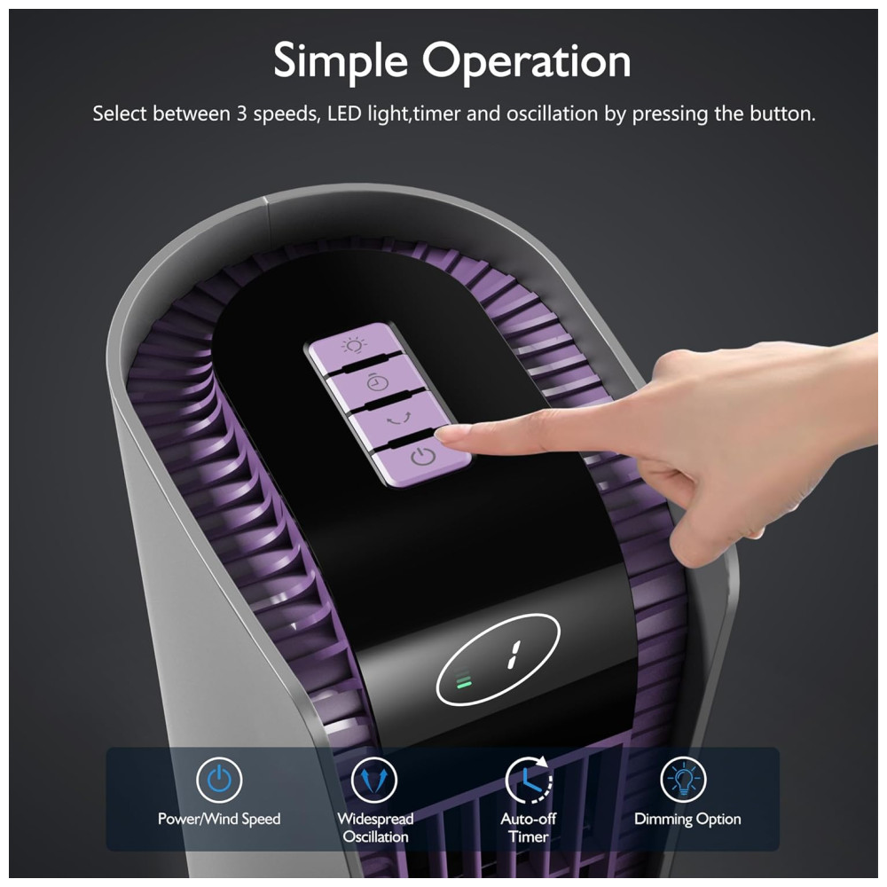 Recursos Adicionais: Ventilador Torre Pequeno, Luz LED, Ventilador de Mesa Oscilante, Timer