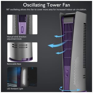 Ventilador de Pé: Como os ventiladores torre com bateria não requerem conexão de energia constante, eles contribuem para um ambiente mais limpo e menos desordenado. Sem fios para tropeçar ou esconder, o ventilador proporciona uma aparência mais organizada e facilita a manutenção.