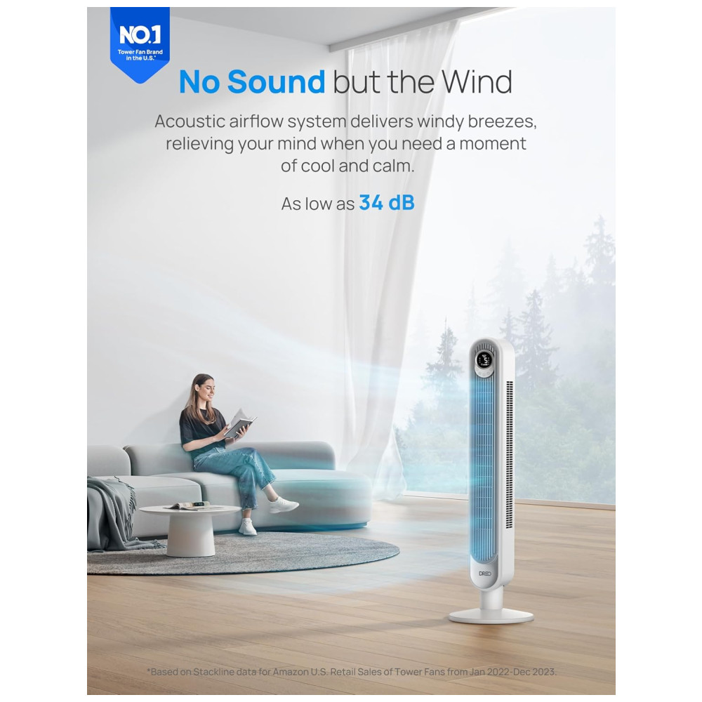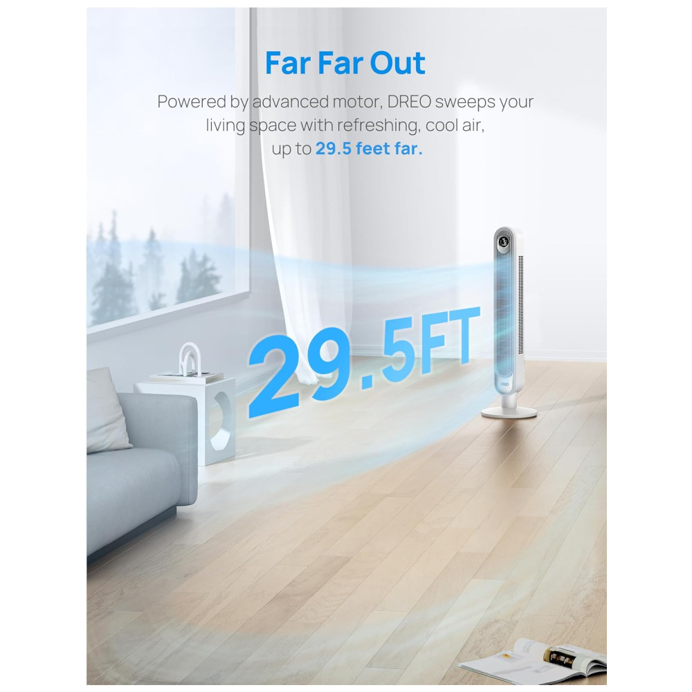 Ventilador de Torre Sem Lâminas com 4 Modos 6 Velocidades Silencioso Temporizador de 12H Display LED Controle Remoto 110V Dreo Branco