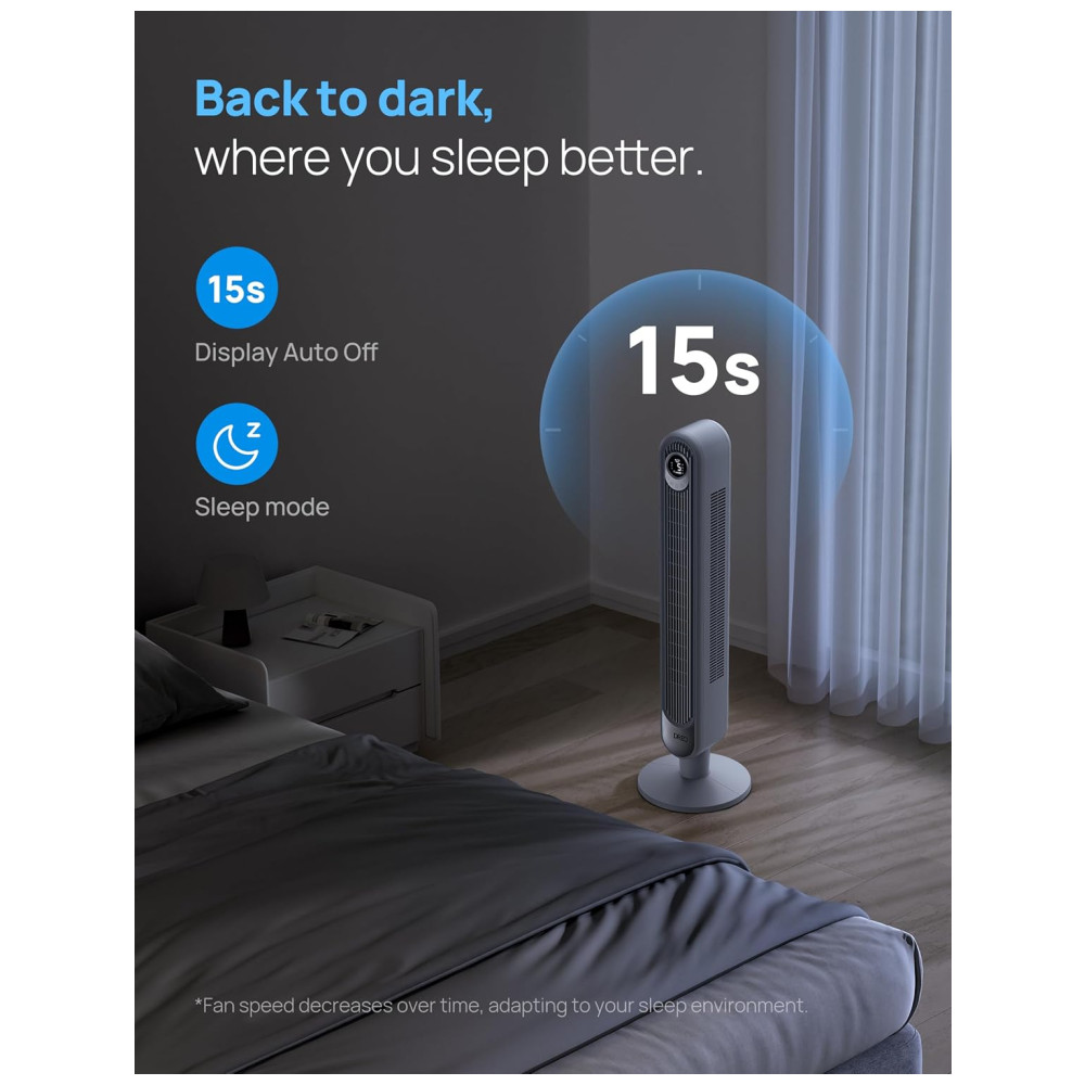 Este ventilador de torre é equipado com um motor potente e um design exclusivo de duto de ar, que permite uma velocidade de fluxo de 7 metros, distribuindo o ar de forma eficaz por toda a sala. Ele é extremamente silencioso, proporcionando uma brisa reconfortante para uma noite de descanso tranquila.