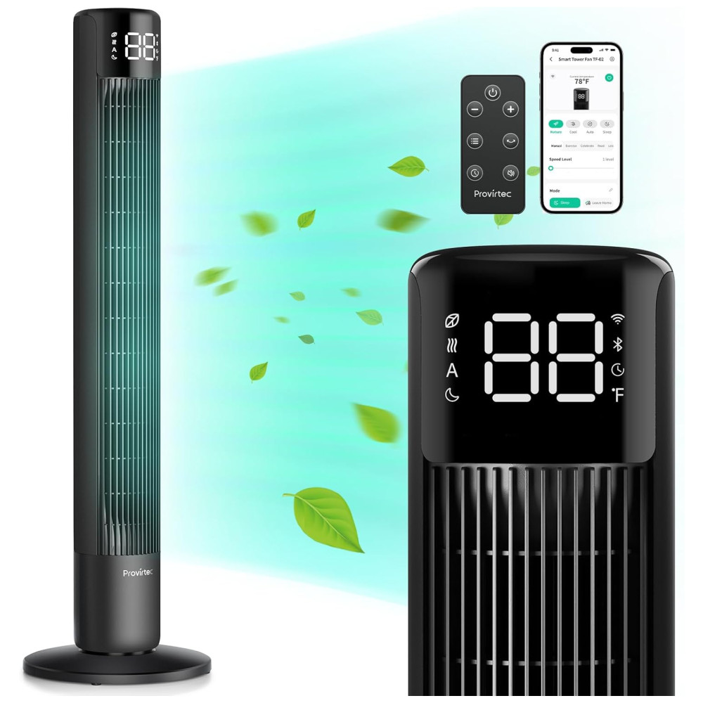 Ventilador de Torre sem Lâminas Estilo Moderno com Oscilação de 120° 8 Velocidades Temporizador de 24H Controle Remoto e APP 110V Provirtec Preto
