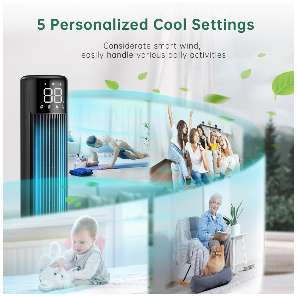 Este ventilador inteligente permite personalizar sua experiência com 5 modos predefinidos através do aplicativo: Lazer, Leitura, Celebração, Exercício e Manual. Assim, você pode ajustar o vento conforme a atividade que estiver realizando.