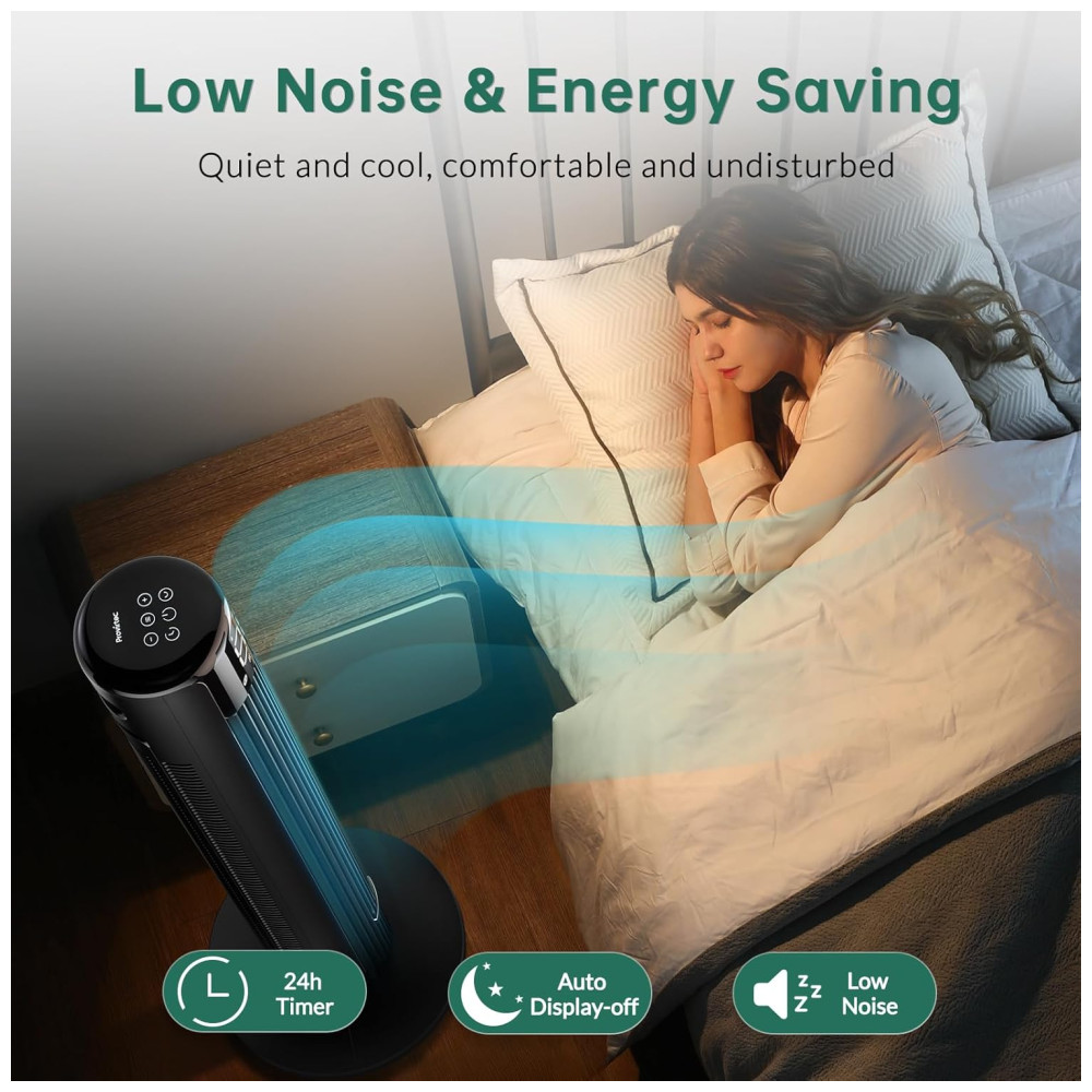 O Ventilador de Torre Provirtec é silencioso e utiliza rolamentos de alta precisão para garantir um resfriamento suave em todas as velocidades. Conta ainda com um temporizador de até 24 horas, ajudando a economizar energia e a preservar o meio ambiente.