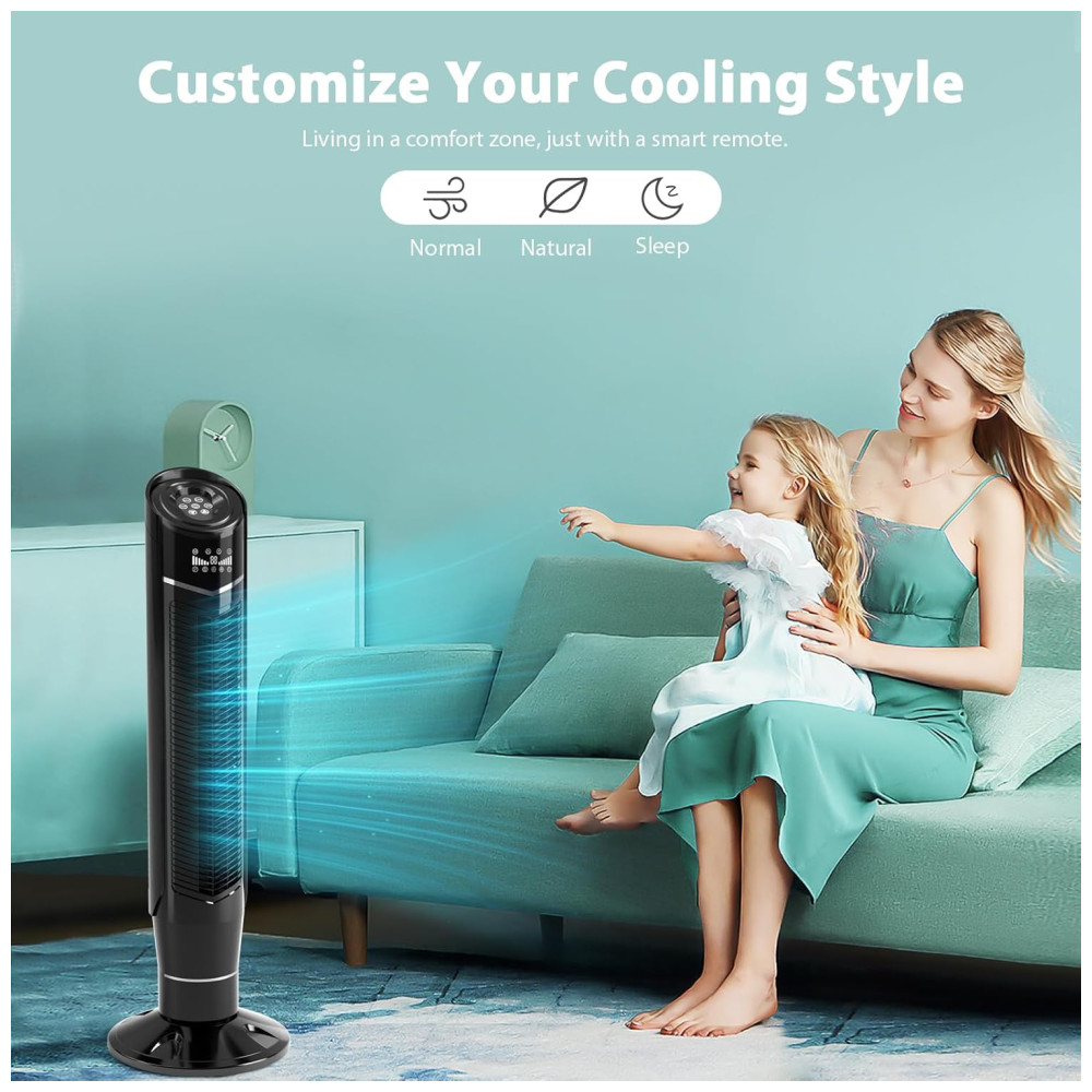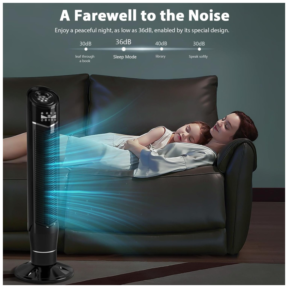 OSCILAÇÃO AMPLA E SUAVE: Este ventilador de piso em torre opera com níveis de ruído muito baixos, enquanto oscila para resfriar uma ampla área. Inspirado no design contemporâneo, este ventilador compacto e estiloso se tornaria uma ótima decoração em sua casa moderna sem ocupar muito espaço. A função de oscilação grande angular de 360 garante uma boa ventilação.