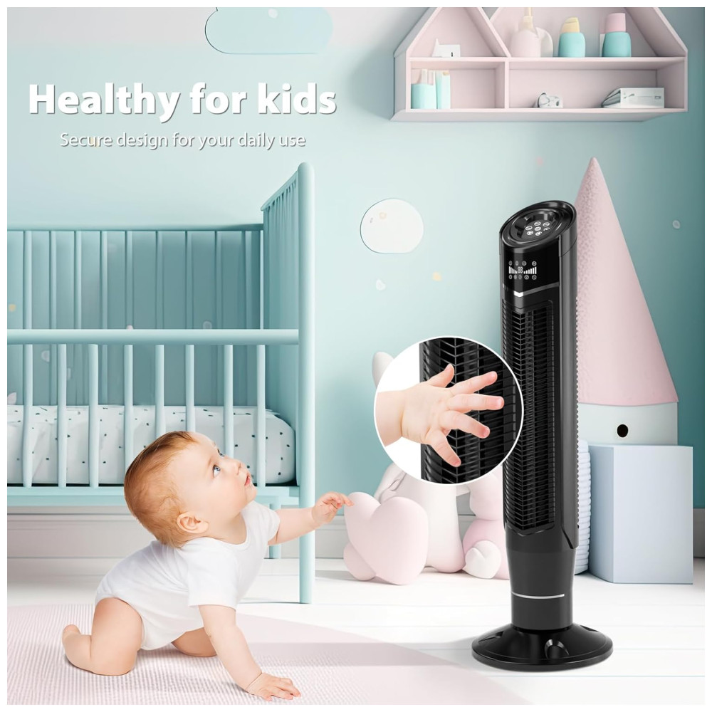 HEHLTHY PARA CRIANÇAS e ANIMAIS DE ESTIMAÇÃO:Este ventilador de torre é ideal para famílias com crianças e animais de estimação. Equipada com cerca estreita, a tampa apertada garante que crianças e cães não possam entrar no ventilador.