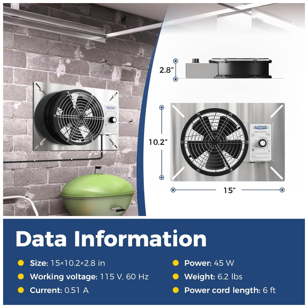 Descubra o Ventilador de Ventilação ALORAIR em Aço Inoxidável, 540 CFM – Potência e Durabilidade para Ambientes Úmidos!