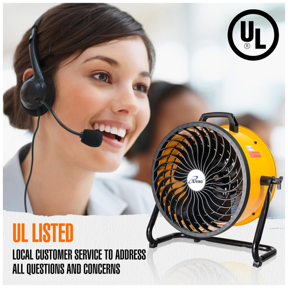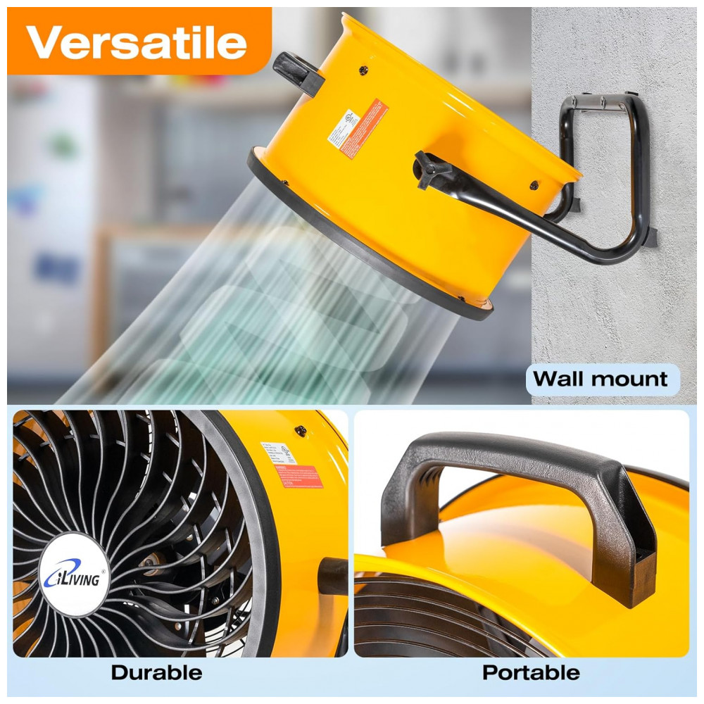 Ventilador iLiving ILG8TF16-DC Amarelo 397 cm 3 Velocidades Baixo Ruído 2687 CFM Motor 162W Portátil Piso/Parede Voltagem 110V