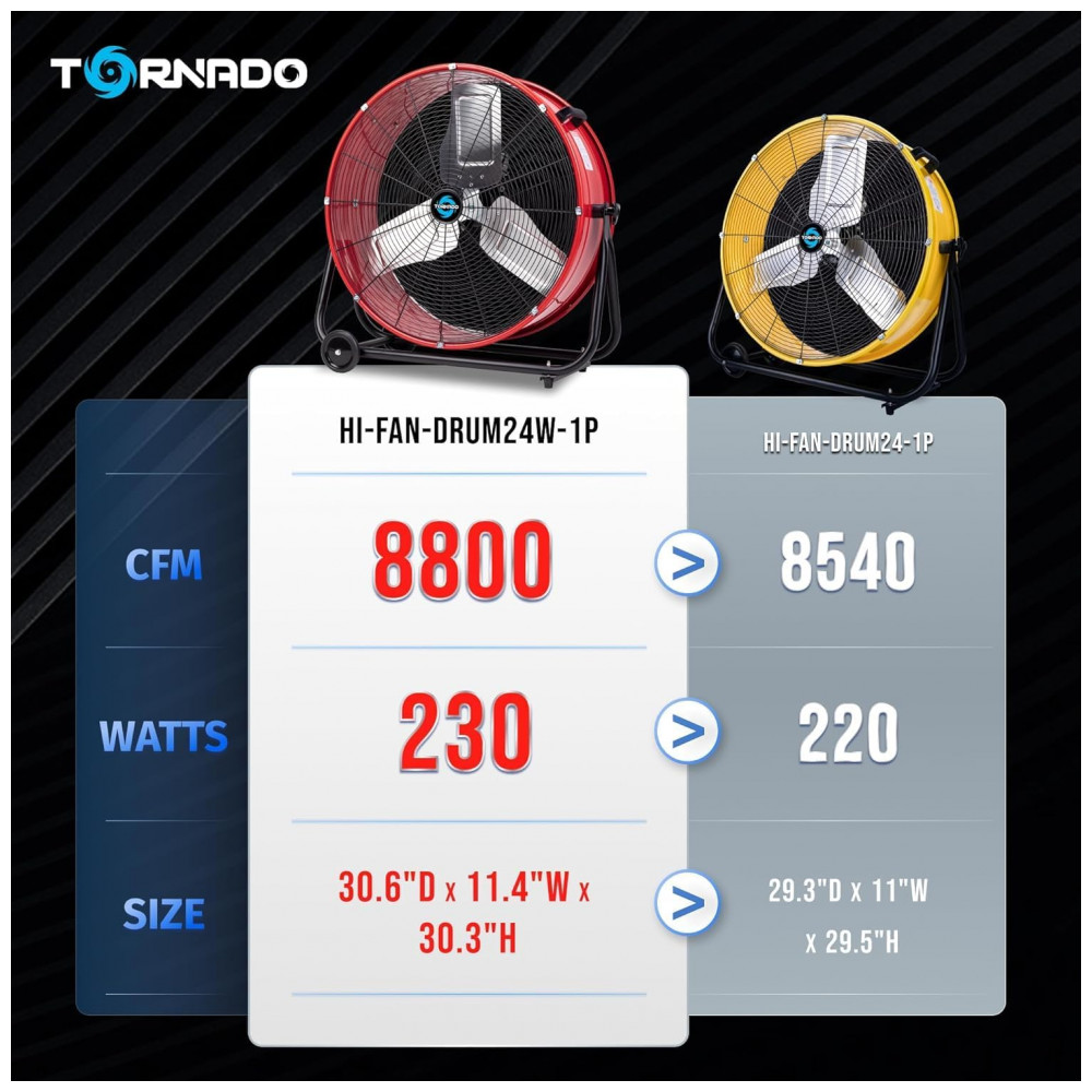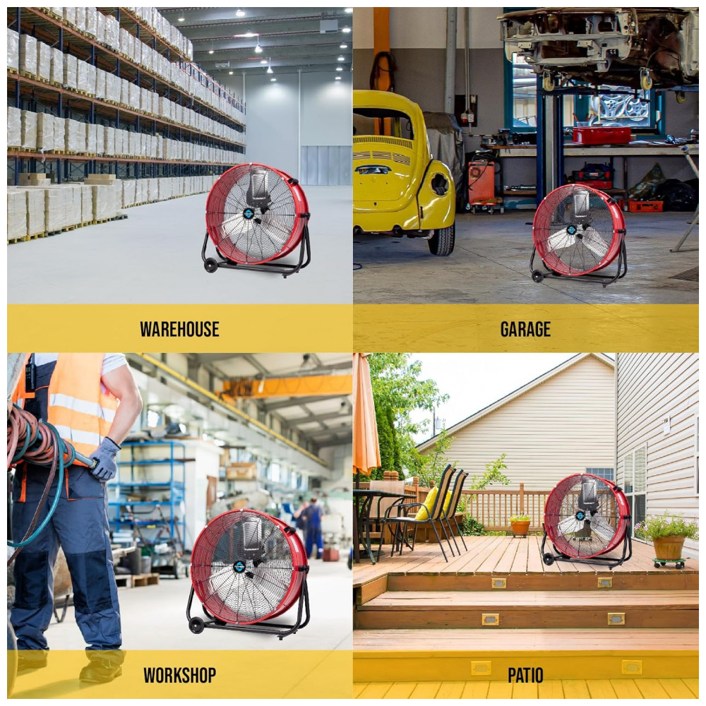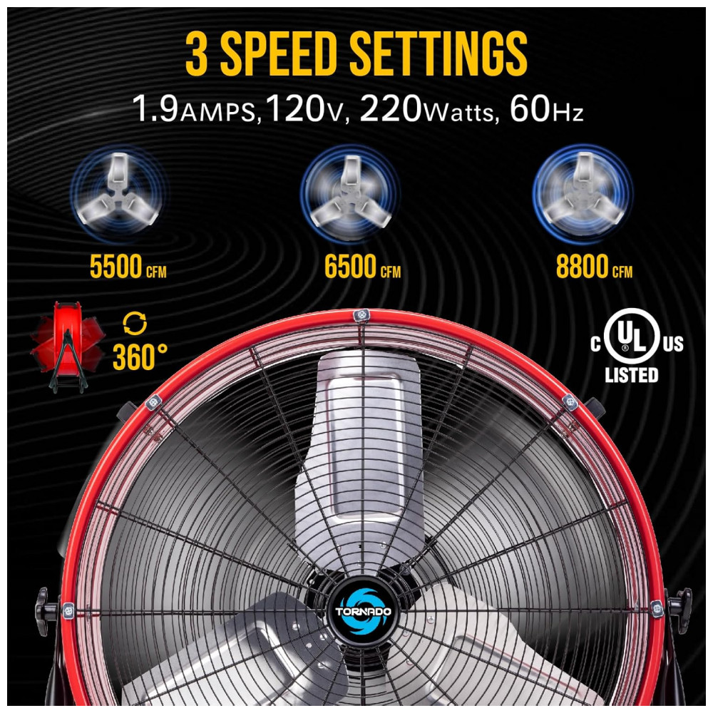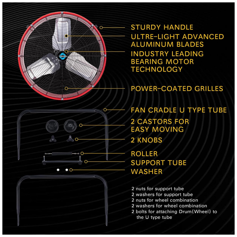Ventilador Industrial de Alta Vazão 61 cm Tornado Vermelho 3 Velocidades 8800 CFM 110V – Metal Base com Rodízios e Inclinação 360°
