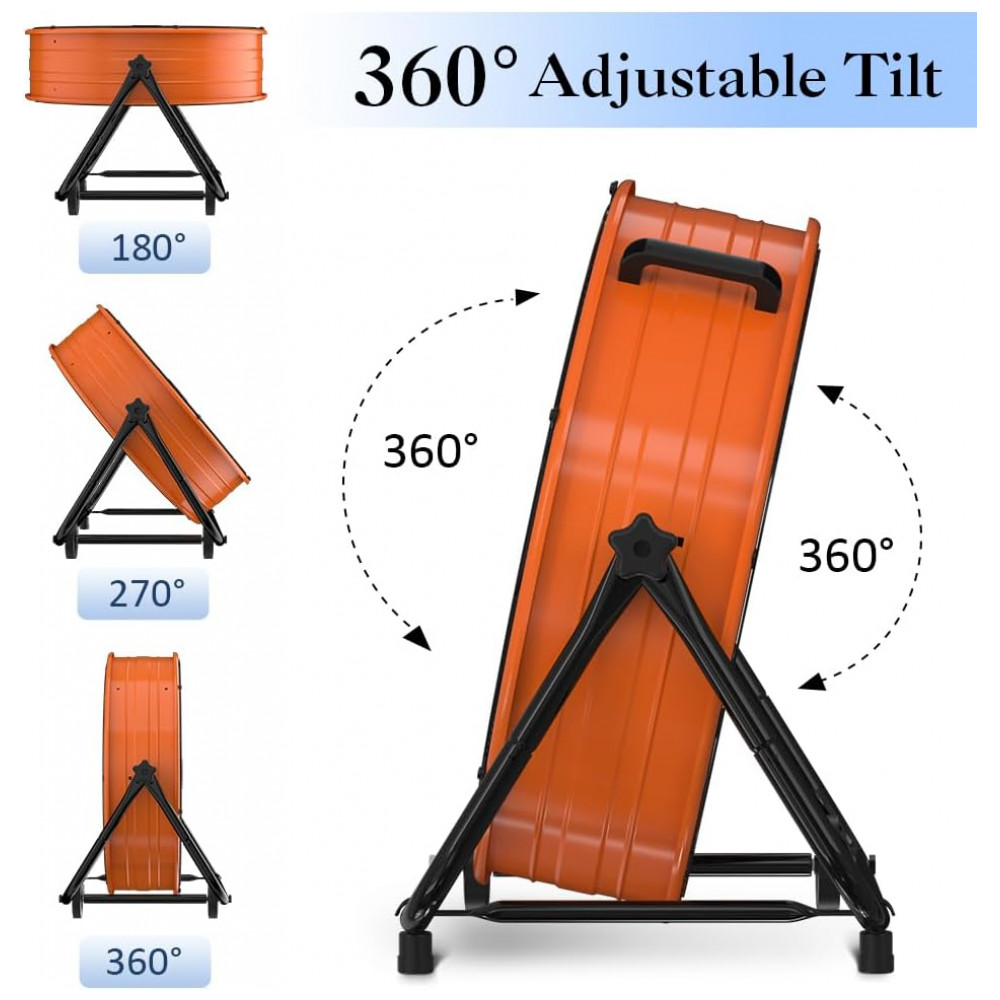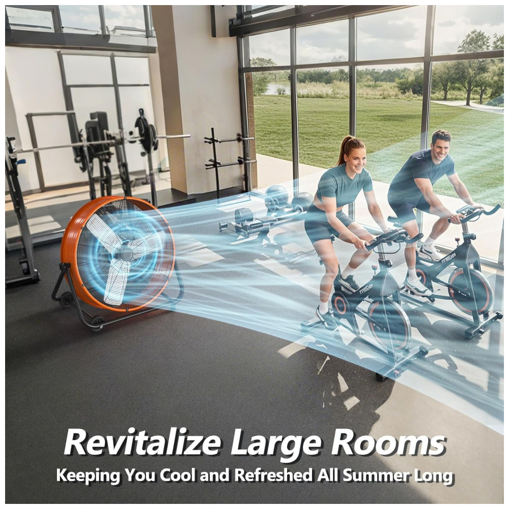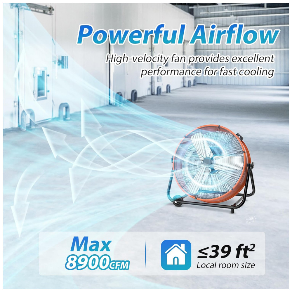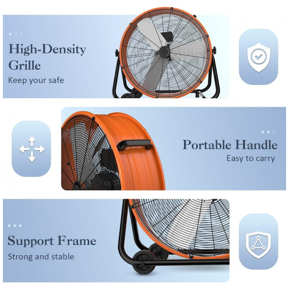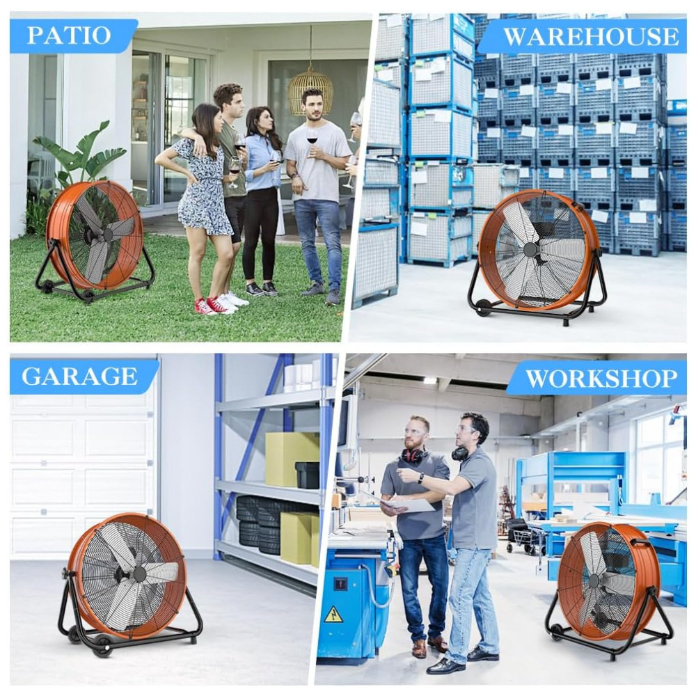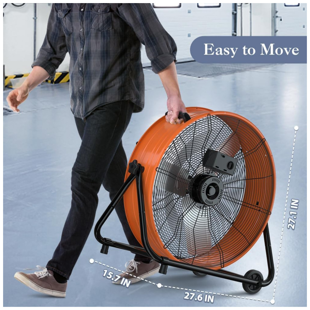 Ventilador Industrial de Tambor LifePlus 61 cm Laranja Alta Velocidade 8900 CFM 3 Velocidades Inclinação Ajustável 360° Modelo 24 in drum fan 110V