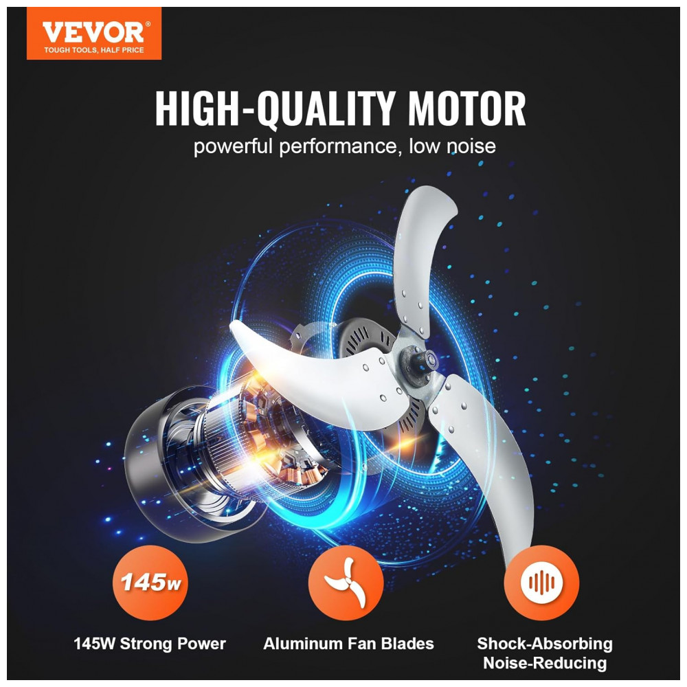 O Ventilador Industrial de Tambor VEVOR de 61 cm é uma solução de alta performance projetada para uso comercial e industrial. Com motor de alta qualidade e pás balanceadas, oferece alto fluxo de ar de até 8700 pés cúbicos por minuto (CFM)(aproximadamente 246,5 metros cúbicos) , garantindo ventilação eficiente em ambientes como armazéns, oficinas, fábricas e porões. Possui três níveis de velocidade ajustáveis via botão giratório para controle preciso do fluxo de ar conforme a necessidade do ambiente. O ventilador tem capacidade de inclinação ajustável em 360° para direcionamento flexível do ar. Sistema de suporte com rodízios e alça larga facilita sua mobilidade em diversas superfícies. Fabricado com estrutura metálica resistente e acabamento em pintura eletrostática, combina durabilidade e baixo ruído operacional para uso contínuo em ambientes industriais. Alimentação por rede elétrica 110V, consumo de 145W.