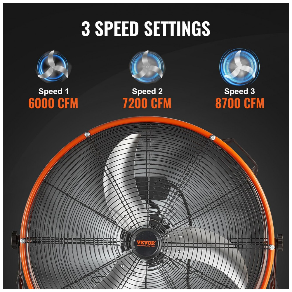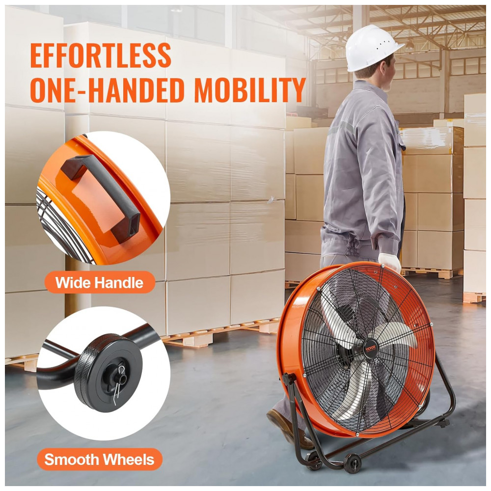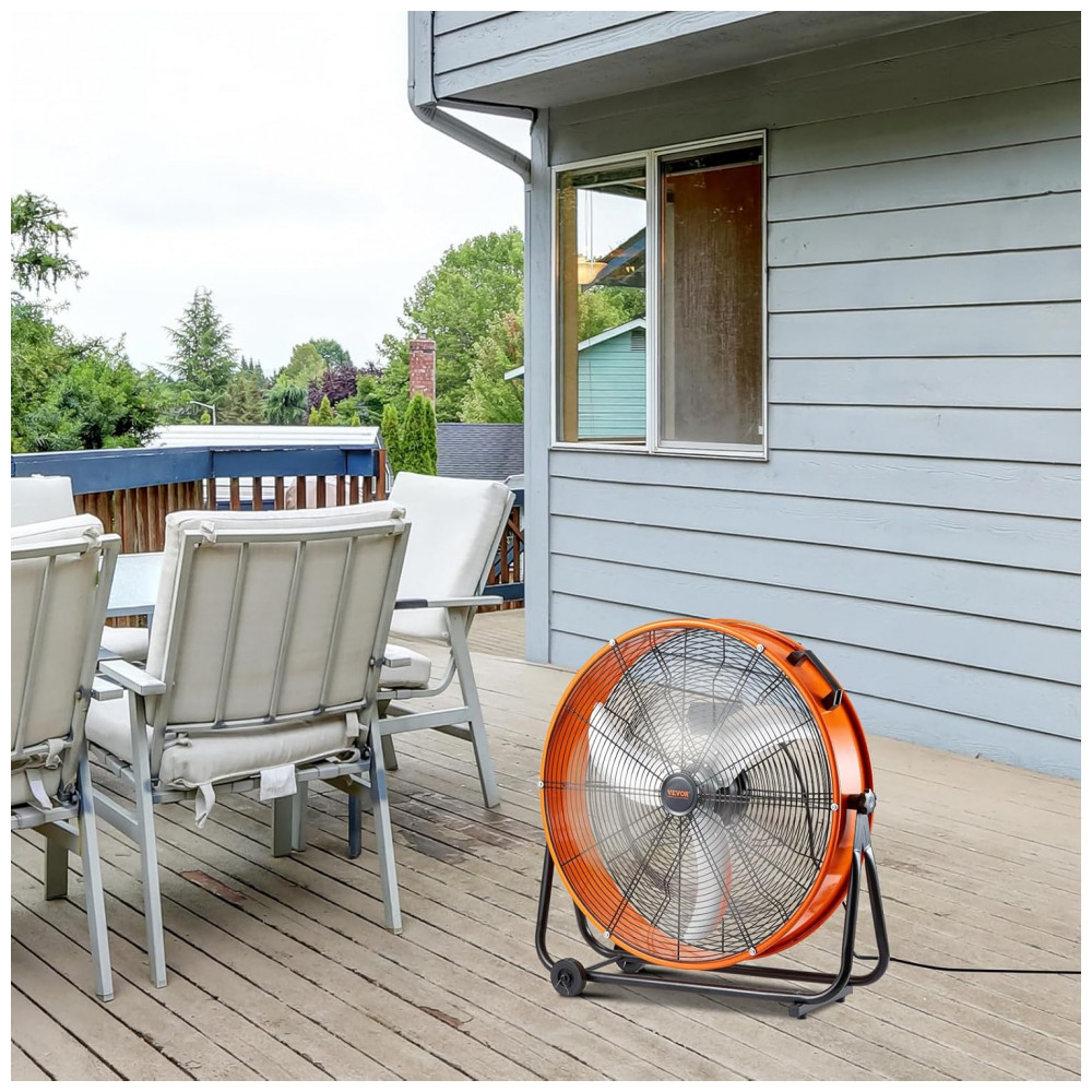 Ventilador Industrial de Tambor VEVOR 61 cm Laranja Alta Velocidade 8700 CFM 3 Velocidades Inclinação 360° Modelo HIFANXDRUM24 110V