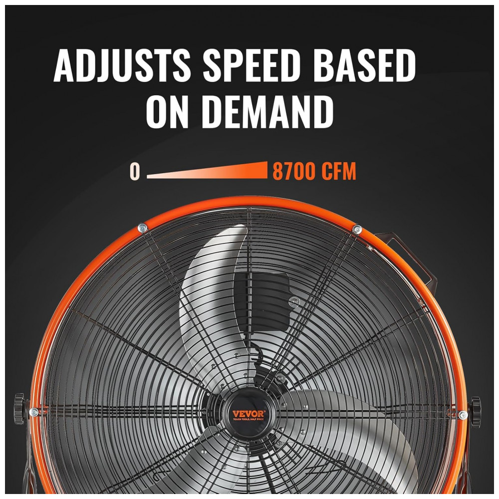 Ventilador Industrial de Tambor VEVOR 61 cm Laranja Alta Velocidade 8900 CFM Controle de Velocidade Contínua Inclinação 360° Modelo HIFANXDRUM2401 110V