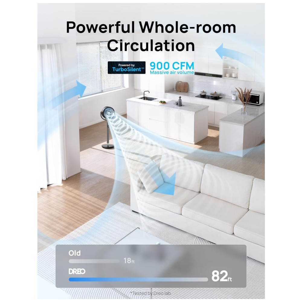O motor DC sem escovas DREO combinado com a tecnologia de lâminas estilo turbina permite que o ventilador circule o ar rapidamente por toda a sala, produzindo 30 mais ar usando 40 menos energia. Com altura ajustável de até 3540 mm e temporizadores de 8 horas, o Dreo PolyFan é um produto versátil e adaptável a diferentes estilos de vida. Sua instalação e limpeza são simples e fáceis de realizar.