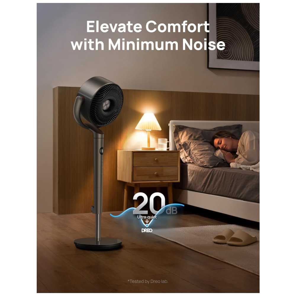 Ventilador para Quarto Oscilação 120° Ventilador de Piso Silencioso com Motor DC 8 Velocidades 3 Modos 20dB Dreo