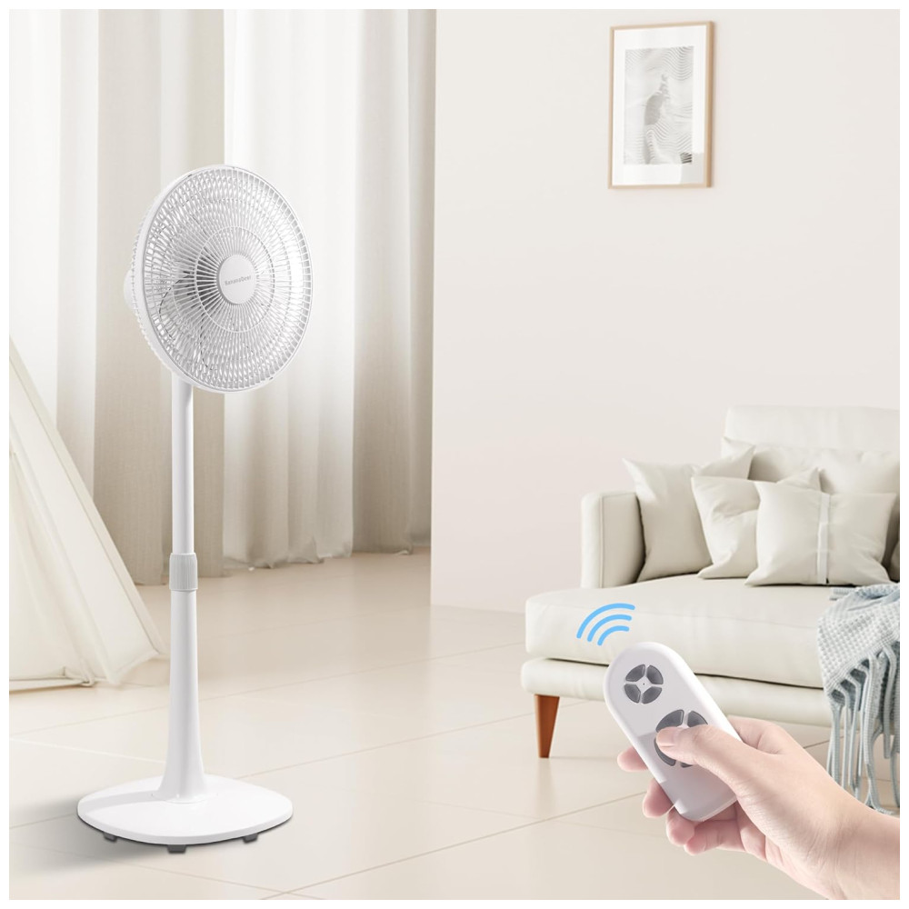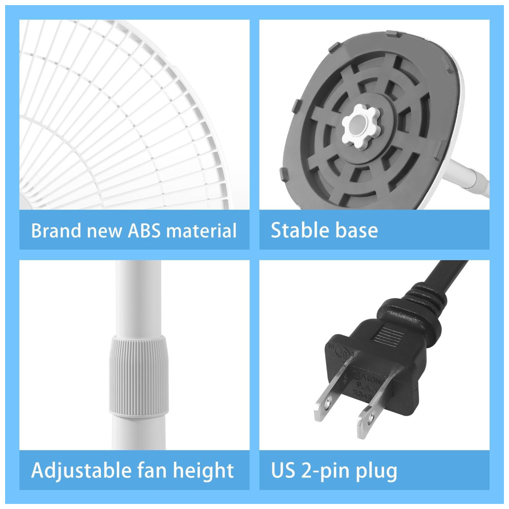 Este ventilador de pedestal oscilante possui um diâmetro de grade de 36,83 cm e lâminas de 12 polegadas, oferecendo um fluxo de ar eficiente e forte, capaz de transportar ar por até 10 metros. Com 4 níveis de velocidade, você pode escolher entre um vento suave e delicado ou um jato mais potente para ambientes maiores, como quartos e salas de estar.