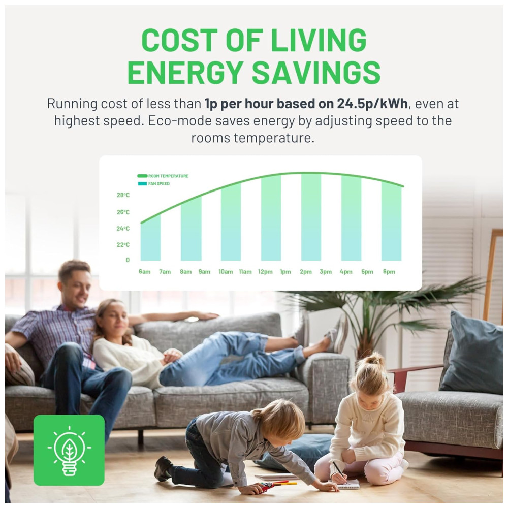 Diferente dos ventiladores convencionais, este modelo não possui lâminas, o que o torna mais seguro e muito mais fácil de limpar. Sua operação é extremamente silenciosa, proporcionando uma circulação de ar eficaz sem perturbar atividades como assistir a um filme, receber convidados ou criar um ambiente romântico.