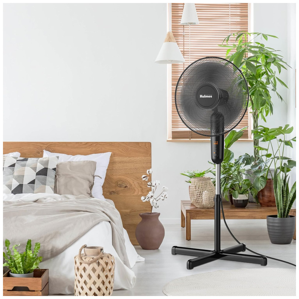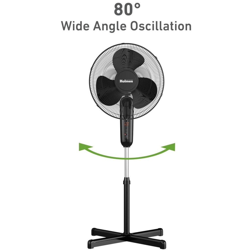 Ventilador Pedestal com Oscilação de 80° 3 Modos 3 Velocidades Temporizador 75H e Controle Remoto 110V HOLMES Preto