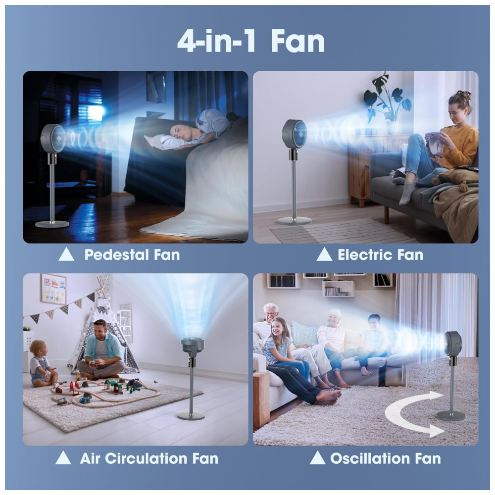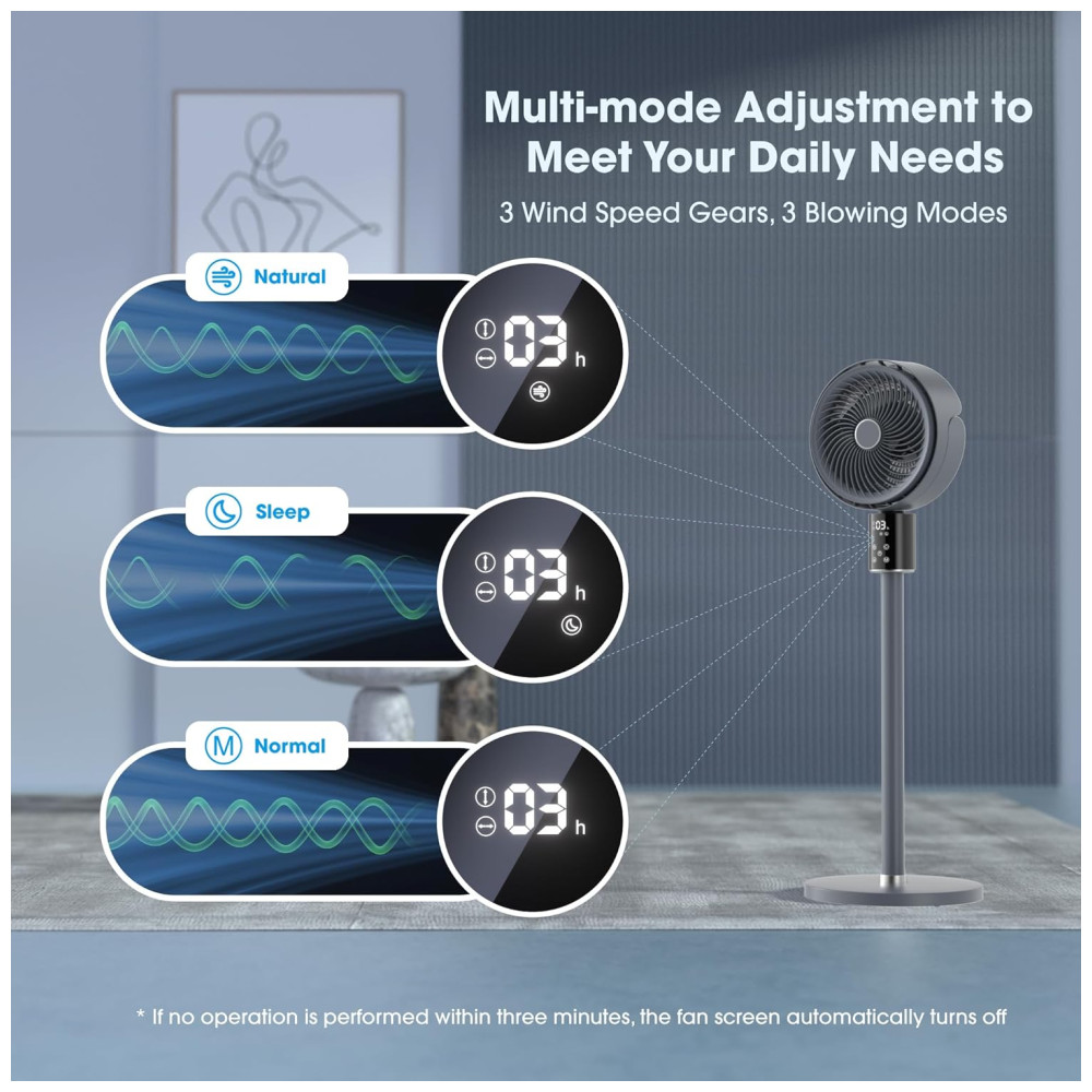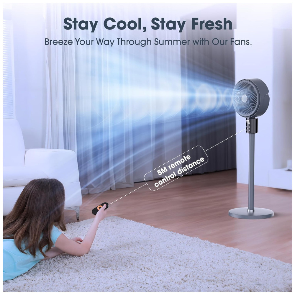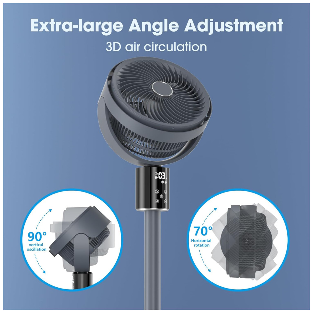 Ventilador Pedestal Digital com Altura Ajustável Ultra Silencioso de 36-50 dB 12 Velocidades Temporizador 12H e Controle Remoto 110V Feculs Official Cinza Escuro