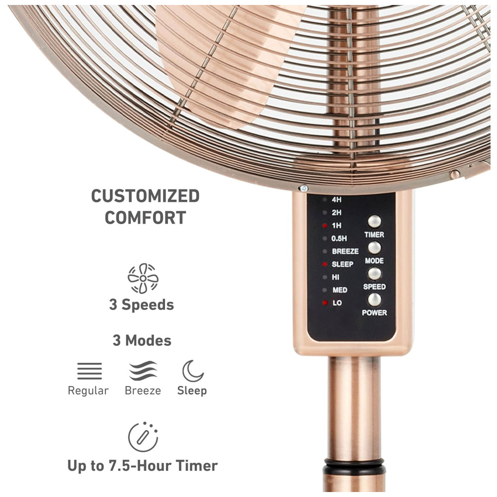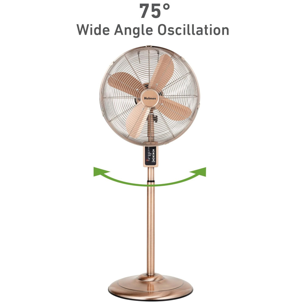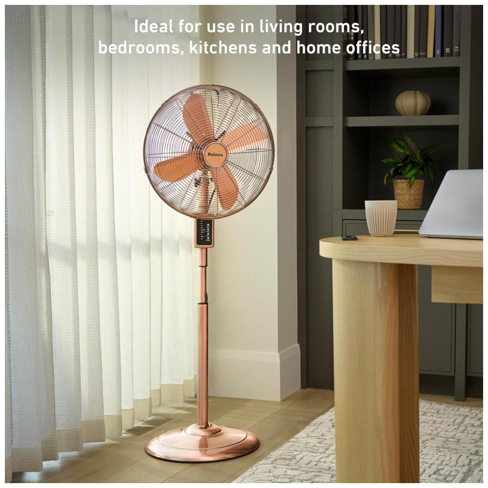 Ventilador Pedestal Digital com Controle Remoto Oscilação de 75° 3 Velocidades 3 Modos Altura Ajustável e Inclinação da Cabeça de 20° 110V 45W HOLMES Cobre