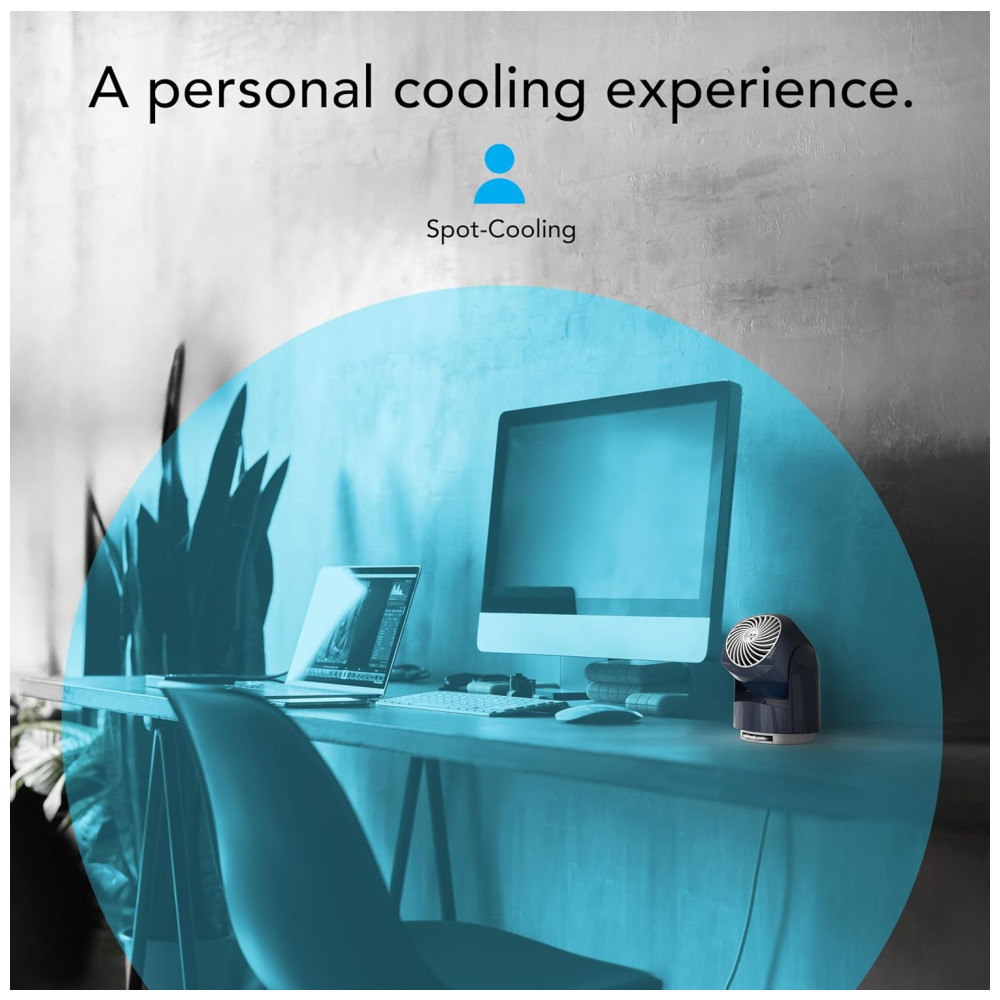 Descubra o Ventilador Pessoal Vornado Flippi V6, um circulador de ar compacto na cor azul meia-noite, perfeito para mesas e espaços de trabalho. Projetado para oferecer resfriamento eficaz sem ocupar muito espaço, ele se encaixa confortavelmente na sua mesa, garantindo uma brisa refrescante.