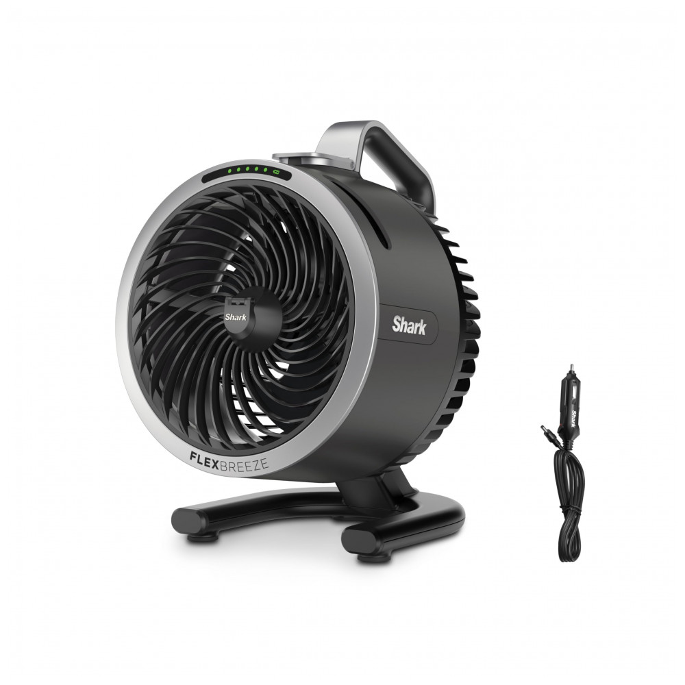 Conteúdo da embalagem: Ventilador Shark FlexBreeze HydroGo Fan, cabo de carregamento, carregador veicular 12V