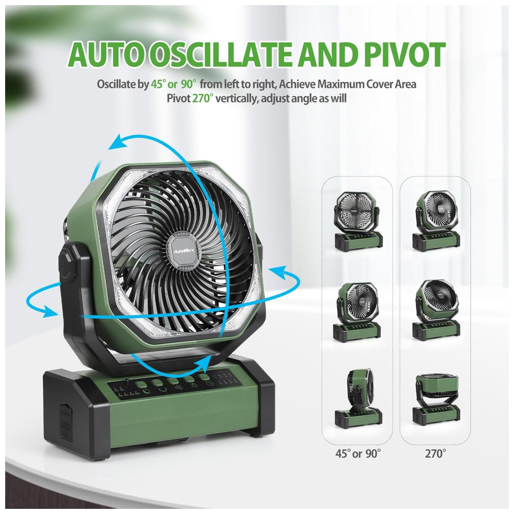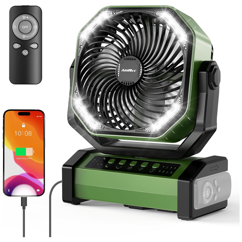 Ventilador Portátil Recarregável com Bateria de 20000mAh 4 Velocidades e Controle Remoto 5V 37W AddAcc D12 Verde