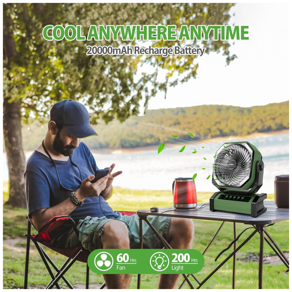 Conheça o Ventilador Recarregável para Camping de 20000mAh – Potência e Conforto em Qualquer Lugar:
