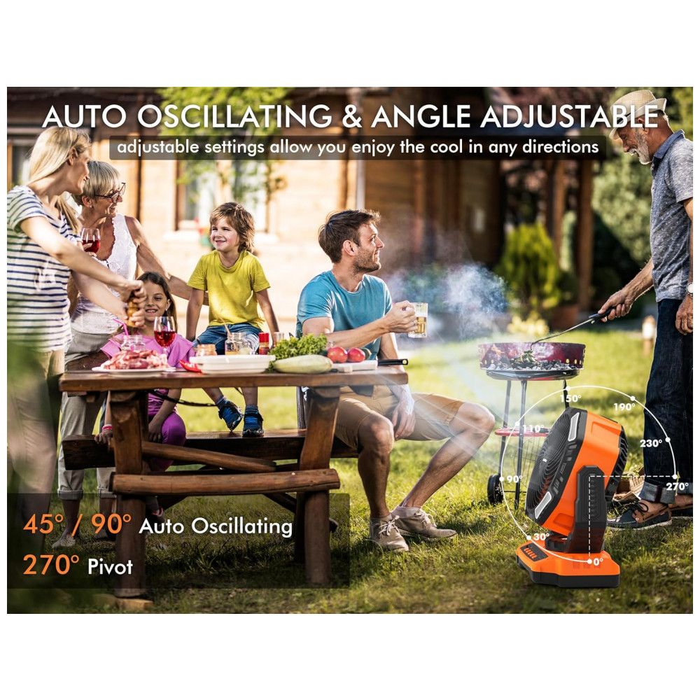 Oscilação Automática e Pivô de 270°: Este ventilador alimentado por bateria pode oscilar automaticamente de 45° a 90° horizontalmente e é ajustável em 270° verticalmente, permitindo fácil ajuste do ângulo em qualquer direção. Com uma alça de silicone oculta, ele pesa apenas 3,43 kg e é fácil de transportar. Além disso, a tampa frontal pode ser removida com uma chave de fenda (não incluída) para facilitar a limpeza das hélices.