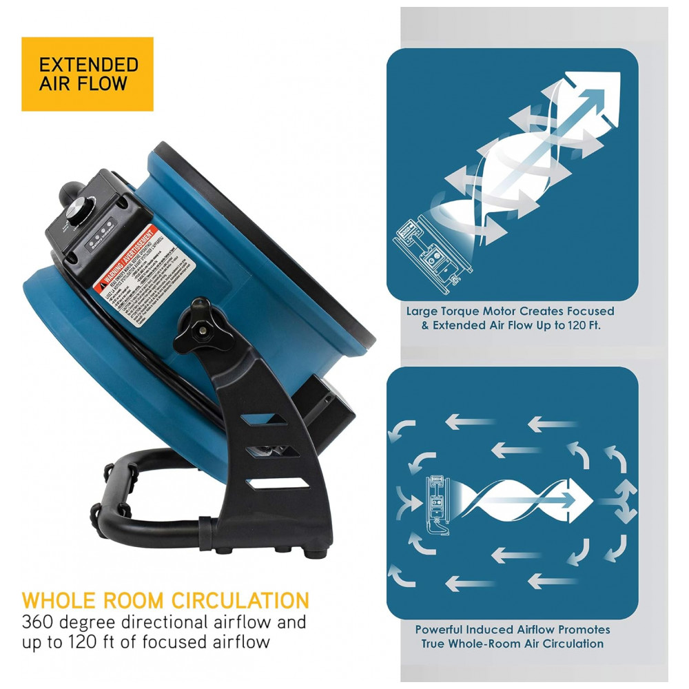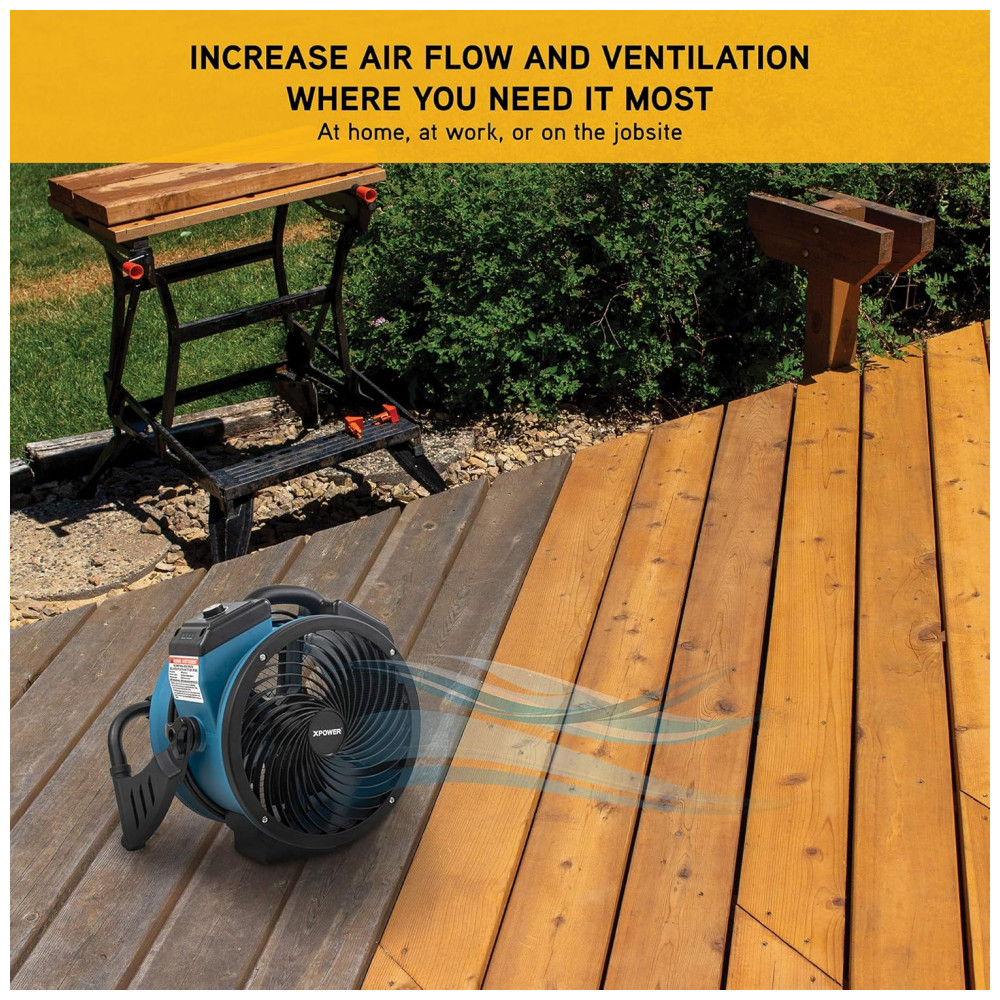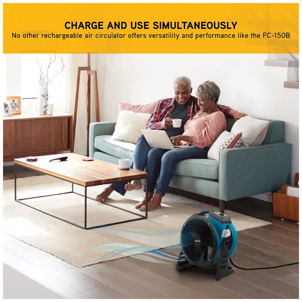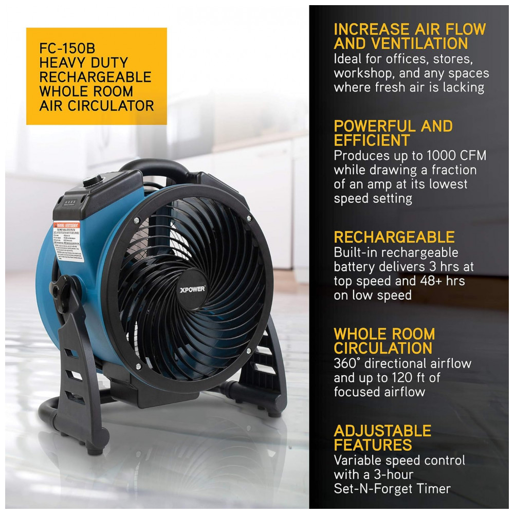Ventilador Portátil XPOWER FC-150B Azul Motor DC Brushless Bateria Recarregável 18200mAh Fluxo de Ar 1000 CFM 33 cm 115V