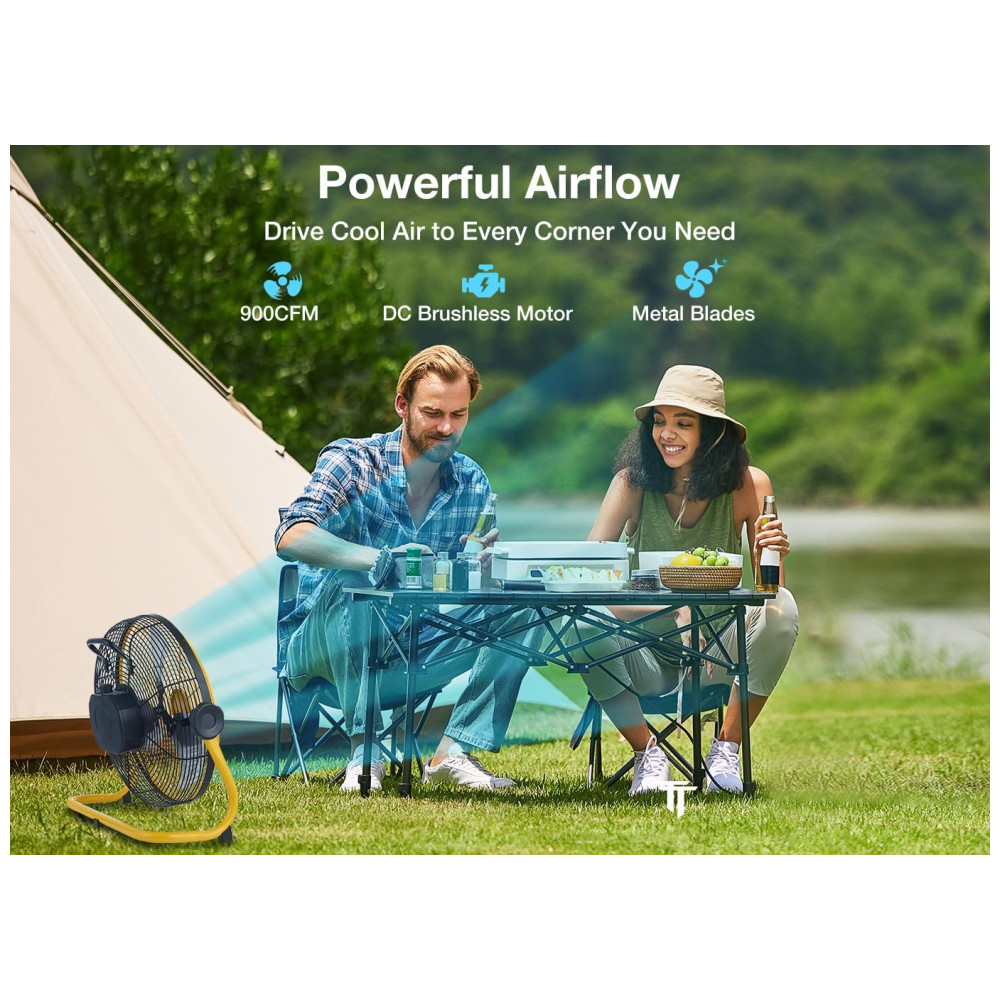 BATERIA DE ALTA QUALIDADE: Equipado com uma bateria integrada de alta capacidade, este ventilador para camping supera outros ventiladores externos a bateria. Utilizando a mais recente tecnologia de carregamento rápido, leva apenas 2 a 3 horas para carregar completamente. Nós buscamos qualidade, e você também merece.