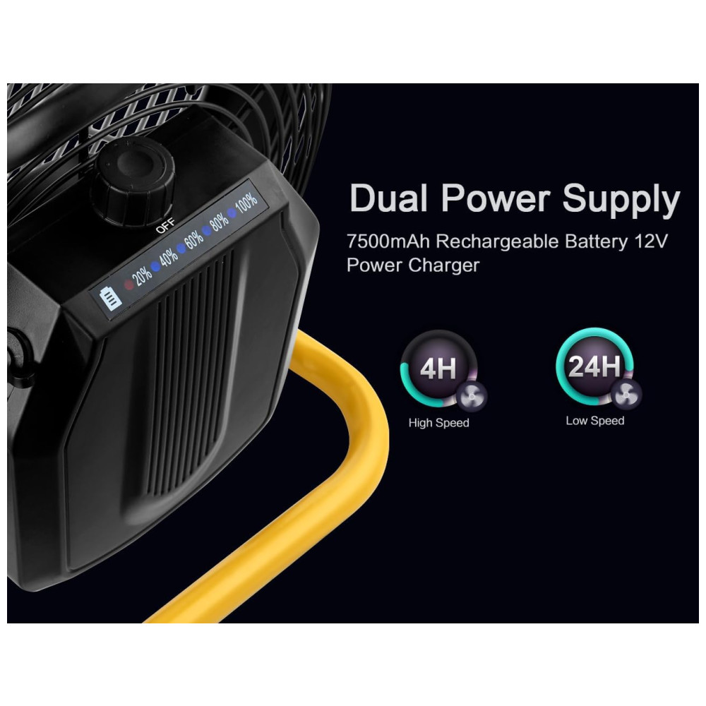 IDEAL PARA USO EXTERNO: Após uma carga completa, este ventilador de chão pode funcionar por até 24 horas, atendendo às suas necessidades durante viagens prolongadas. Seu design estável e portátil o torna perfeito para atividades ao ar livre, como churrascos, camping, pesca e esportes ao ar livre.