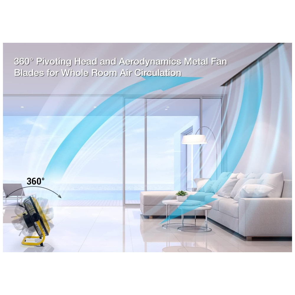 ATRAVESSE LIMITES: Com uma estrutura estável baseada em aerodinâmica e um motor DC sem escova avançado, este ventilador de chão recarregável oferece um vento potente e silencioso. Com capacidade de 900 CFM, a transição de velocidade é suave, mesmo quando você ajusta a velocidade aleatoriamente.