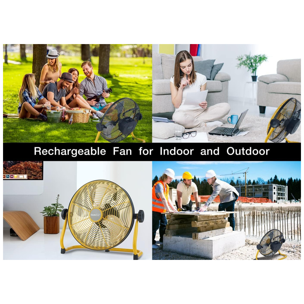 PERFEITO PARA USO INTERNO: Com hélices projetadas para oferecer uma brisa suave e confortável, este ventilador sem fio e com bateria pode ser posicionado em qualquer lugar do ambiente. Use-o como ventilador de chão interno, circulador de ar ou ventilador externo. Experimente a revolução do ventilador recarregável!