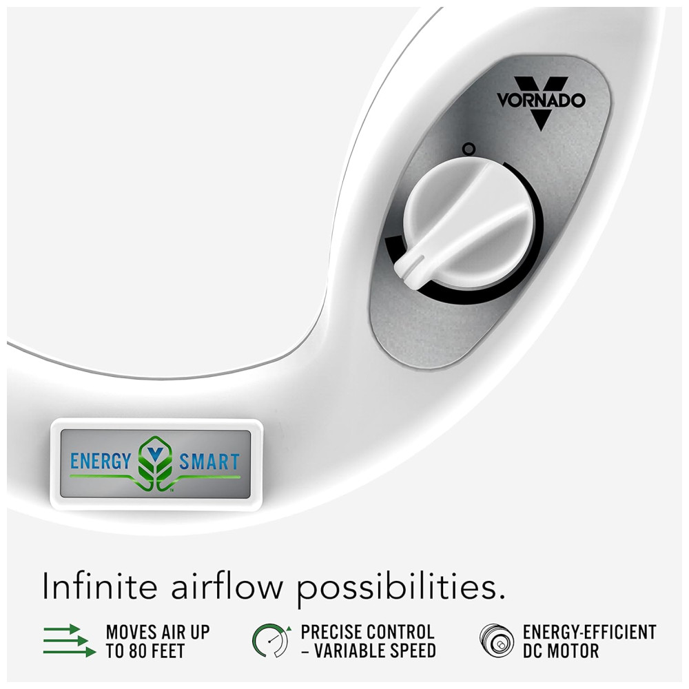 Apresentando o Vornado 610DC Circulador de Ar Energy Smart, um ventilador potente que utiliza a exclusiva tecnologia de circulação Vortex para oferecer um resfriamento superior em todo o ambiente. Com um motor DC sem escovas, ele garante eficiência energética e um fluxo de ar otimizado, proporcionando conforto completo em qualquer espaço.