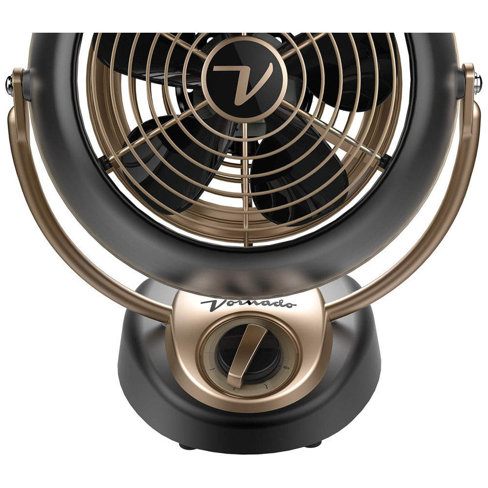 Descubra o Vornado VFAN Petite Alchemy Vintage Fan, um ventilador retrô compacto que une elegância e funcionalidade. Com um design metálico durável, acabamento texturizado em Gunmetal e detalhes em cobre, ele oferece um visual industrial sofisticado para quartos, escritórios, salas de estar, cozinhas e muito mais.