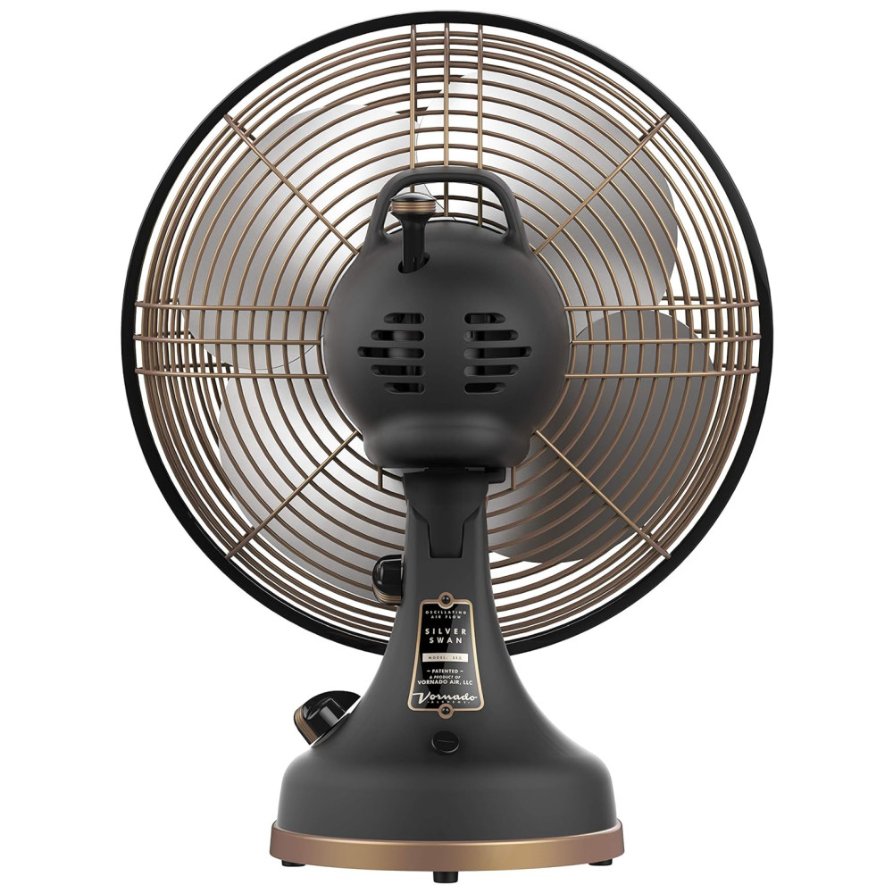 Descubra o Vornado Silver Swan Alchemy Ventilador Oscilante Vintage, onde o moderno e o retrô se encontram em um design sofisticado. Feito com construção em metal durável, ele possui um acabamento matte em Gunmetal com detalhes em cobre, trazendo um toque de elegância e charme para qualquer ambiente.