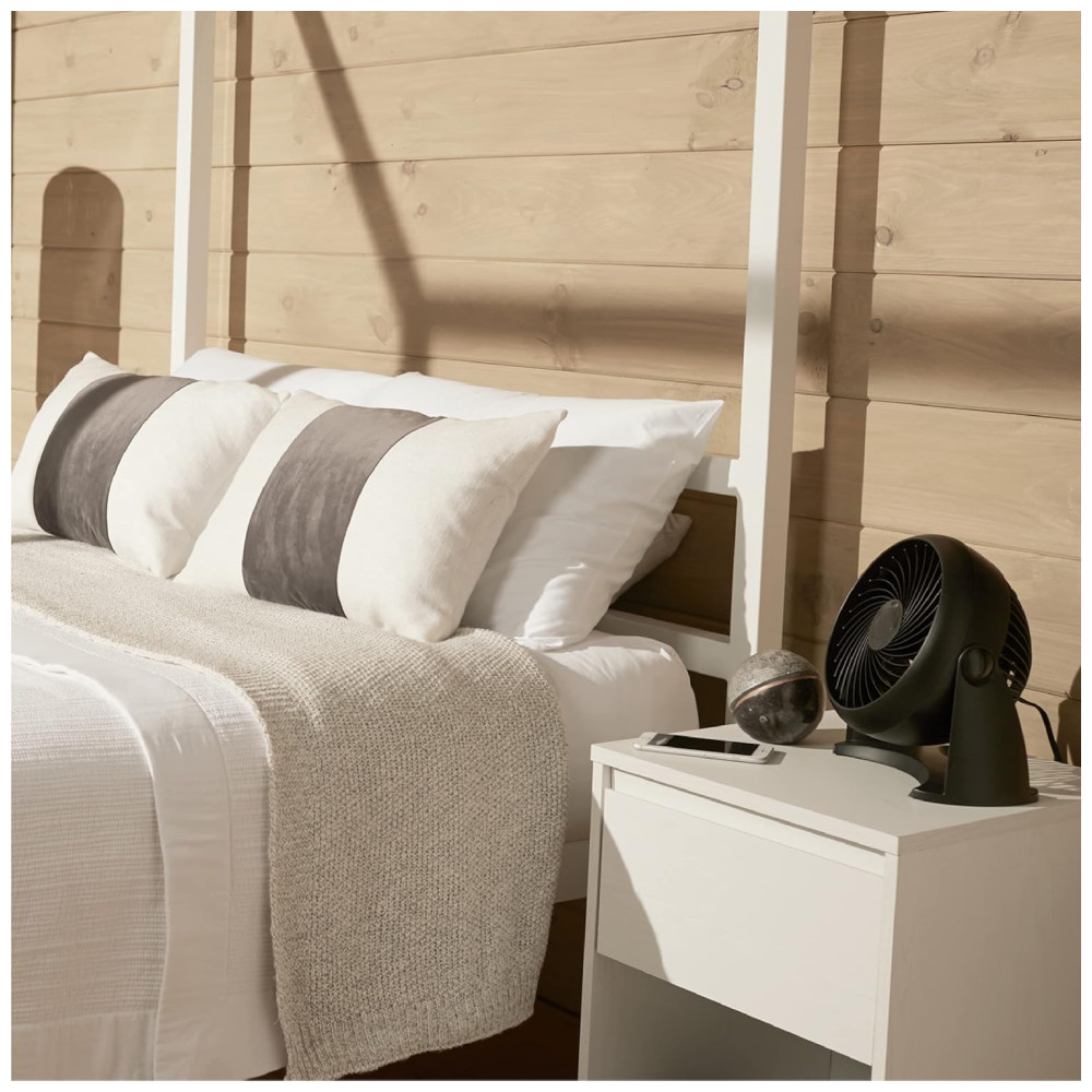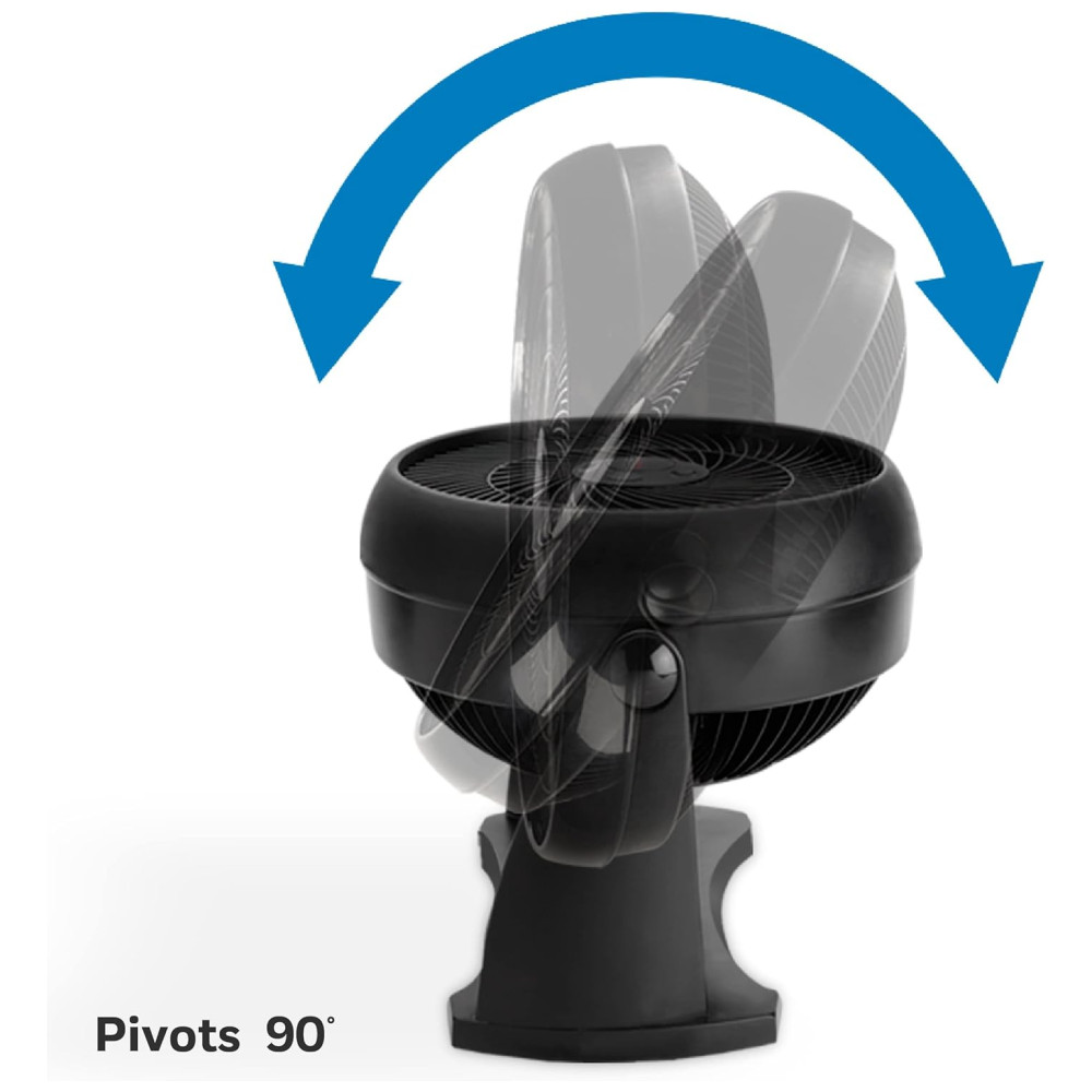 Sua cabeça ajustável pode girar até 90 graus, permitindo direcionar o fluxo de ar para resfriamento direto ou para circulação em diferentes áreas do ambiente. A distribuição máxima de ar é alcançada graças ao design turbo aerodinâmico, que melhora o desempenho e a eficiência.