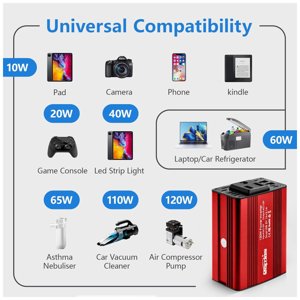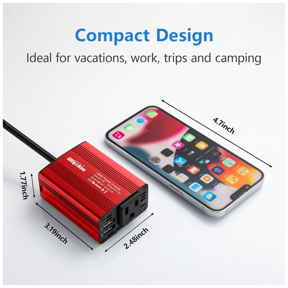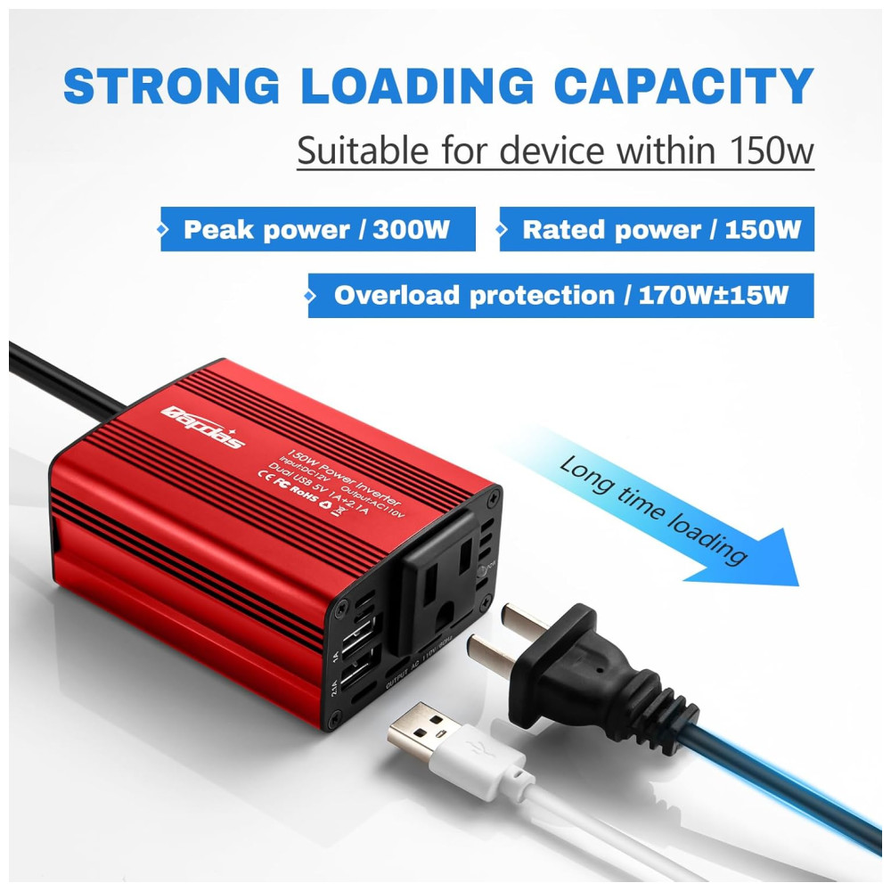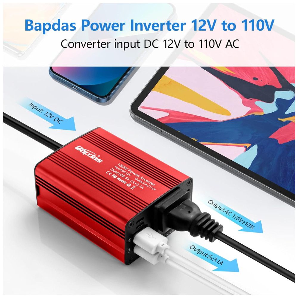 versor de Potência W 12V Para AC 1 Tomada 2 Portas USB 110v BAPDAS BP IN 150 Vermelho